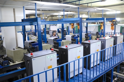 同样在安徽濉溪经济开发区,安徽亚明铝业科技有限公司的生产车间,一卷卷原料被送入腐蚀机内,经过打孔、扩孔、清洗等工序后,变成铝电解电容器专用材料阳极箔,这些电极箔最终将被用在通信设备、太阳能和风力发电、新能源汽车等终端设备中。
