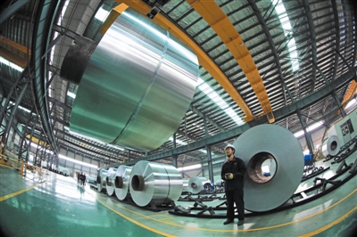 濉溪经济开发区一家铝企业车间,工人正在进行生产作业