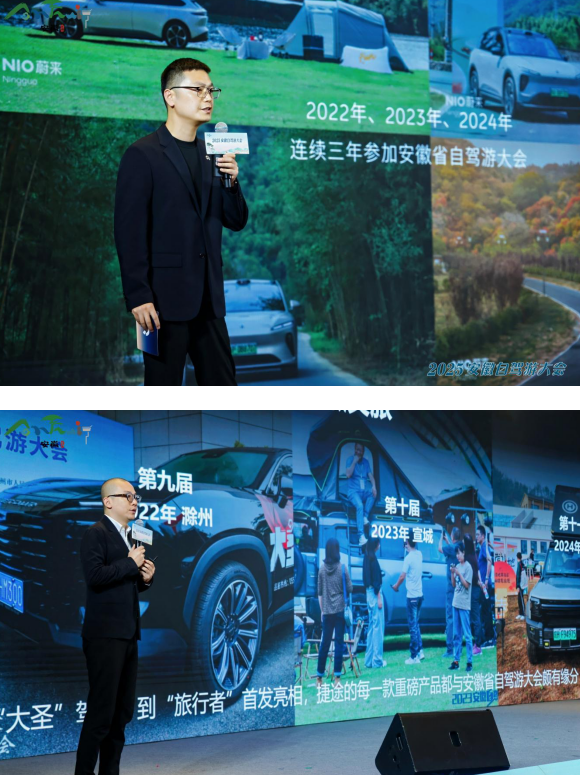 此外,作为“驾游安徽”合伙人代表,蔚来汽车与捷途汽车也围绕驾游安徽新兴生活方式展开主题分享,从科技赋能、场景创新等角度,为产业升级注入新灵感,进一步推动“驾游安徽”从出行方式向生活方式的体验跃迁。