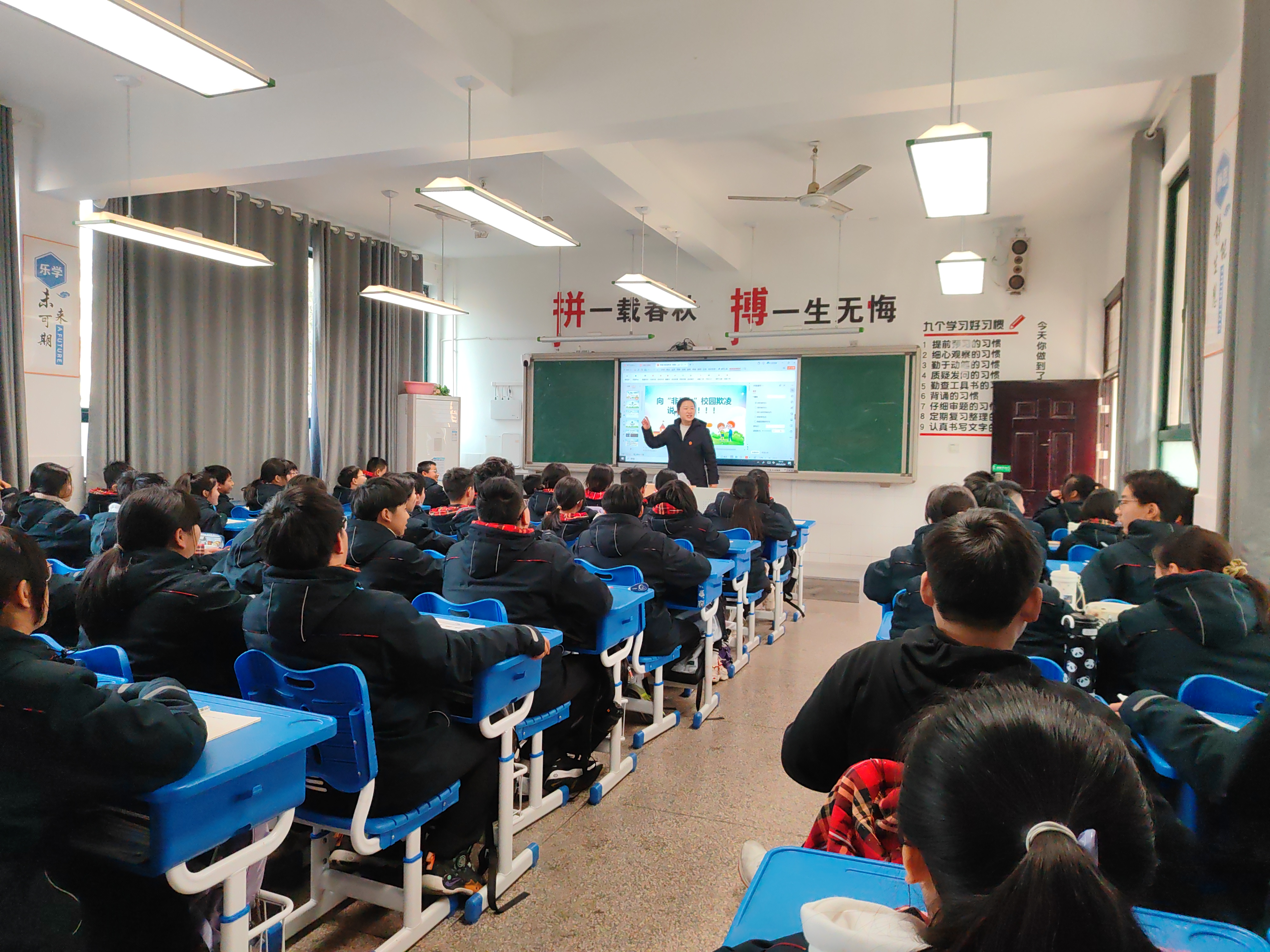 互动环节中,同学们热情迸发,纷纷举手回答提问,台上台下互动紧密,课堂气氛热烈,激发了同学们向校园欺凌说“不”的勇气。
