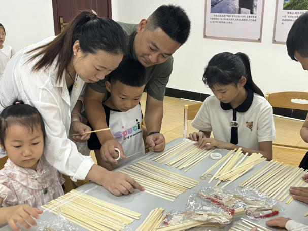 台下,孩子们听得认真,手中动作不停,还按照自己的喜好搭配色彩、调整样式,肆意发挥创意。现场满是剪刀裁剪声、孩子们的讨论声,欢乐与畅想交织。活动尾声,孩子们手持亲手编织的竹扇,在镜头前留下灿烂笑容,为这场趣味活动画上圆满句号。