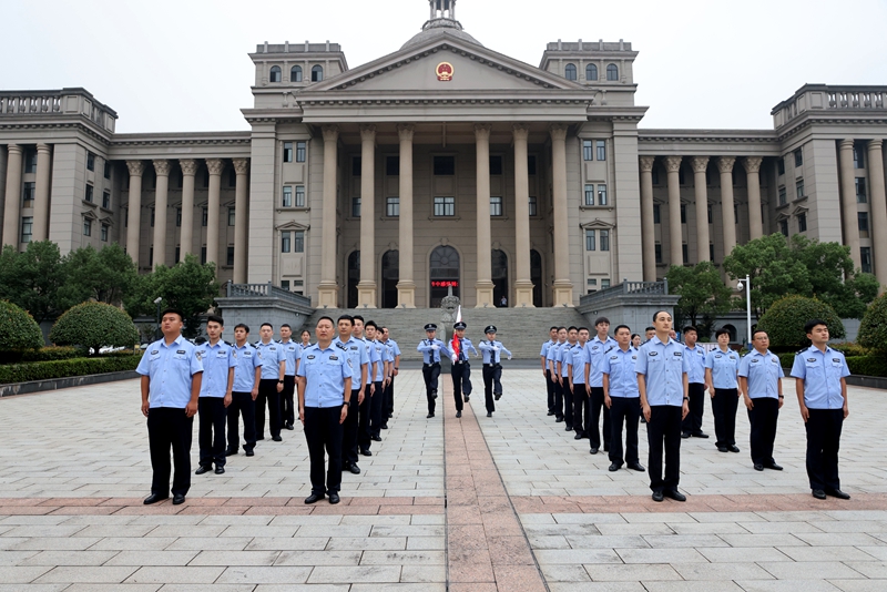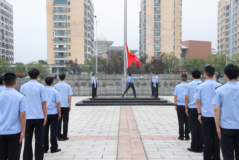 上午7时30分,全体司法警察在国旗台前整装列队,肃穆而立。“正步走!”随着口令响起,三名护旗手步伐铿锵、神情庄重,护卫着五星红旗走向升旗台。伴随着激昂的《义勇军进行曲》,鲜艳的五星红旗冉冉升起,全体法警面向国旗行注目礼,目光坚定,心中涌动着对祖国的无限热爱与深情祝福。