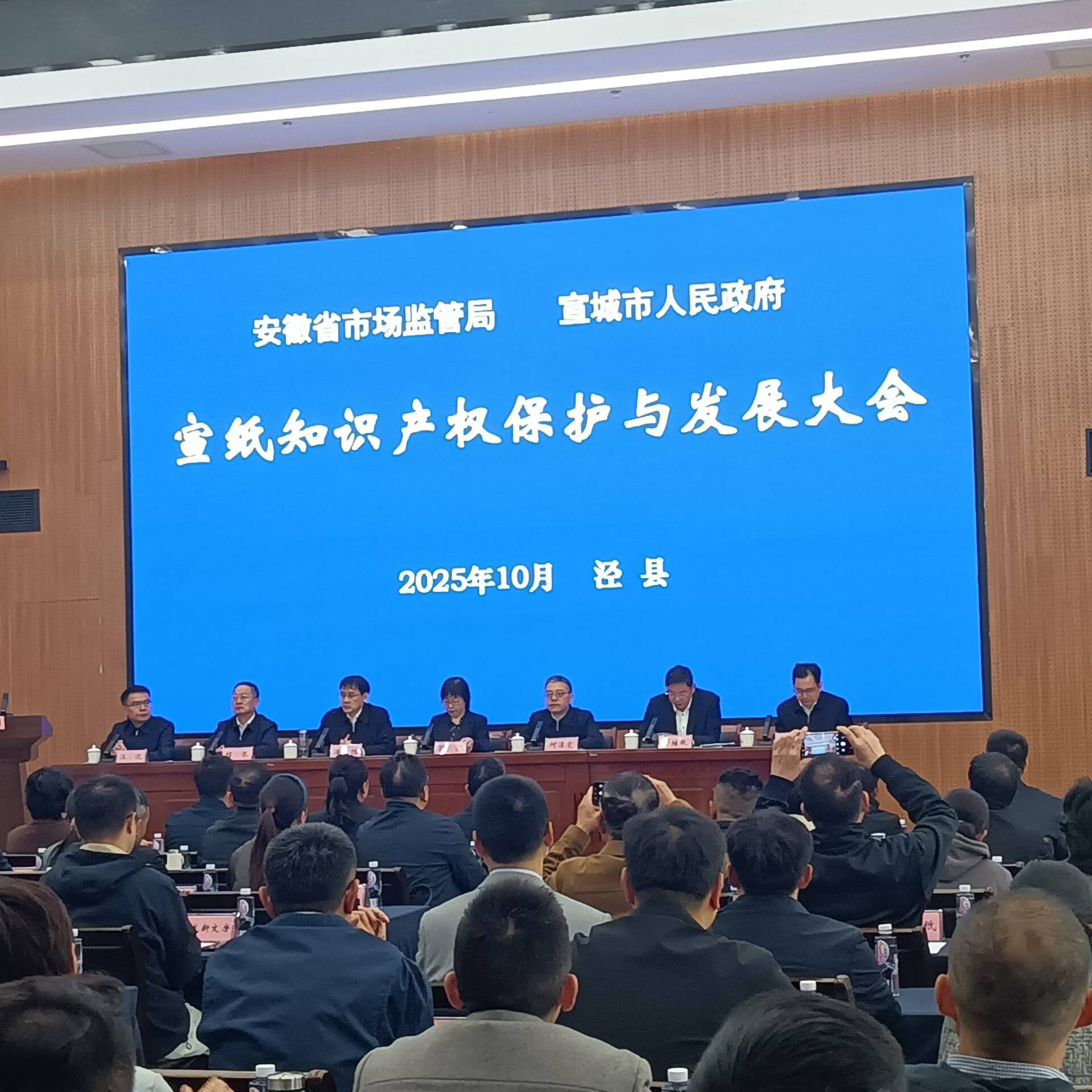 市场星报、安徽财经网(www.ahcaijing.com)、掌中安徽讯 (张萍 曹开发) 10月21日上午,宣纸知识产权保护与发展大会在泾县召开。国家知识产权局知识产权保护司司长郭雯、省市场监管局局长潘东旭、宣城市委书记何淳宽出席并讲话。市长邓继敢主持并介绍了该市知识产权保护工作总体情况。省市场监管局一级巡视员程胤出席并介绍加强宣纸知识产权保护和发展主要任务。市领导储德友、汪侃,市政府秘书长高真理出席。