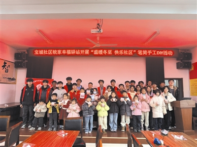 12月20日下午,宣城市宝城社区皖家幸福驿站联合合肥工业大学宣城校区土木工程25-1班的青年志愿者们,共同开展了“温暖冬至·快乐社区”手工DIY活动,有40余名家长儿童参加。