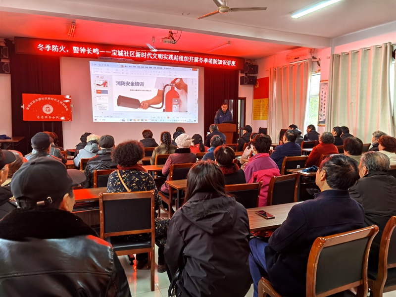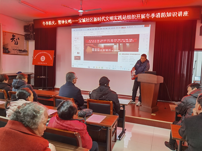 市场星报、安徽财经网(www.ahcaijing.com)、掌中安徽讯(曹开发)冬季天干物燥,是火灾事故的高发期。为切实增强居民的消防安全意识,提升火灾防范与应急处置能力,12月23日上午,宣城市宝城社区新时代文明实践站组织开展了一场主题为“冬季防火,警钟长鸣”为主题的冬季消防安全知识,活动邀请了金鑫消防公司专业人员前来授课,吸引了社区党员以及居民群众的积极参与。