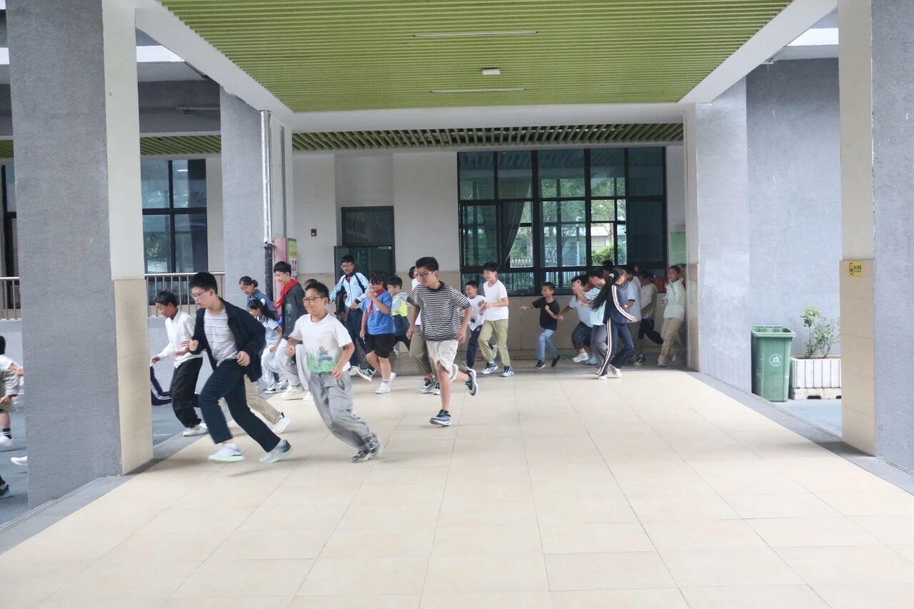 随着防空警报的拉响,全校2000余名师生按照预设疏散路线,有序向教学楼外的操场安全区域转移。从警报响起至全体师生撤离到安全区域,整个疏散过程高效、有序。随后,各年级向指挥长马永健副书记汇报学生人数,确认全校师生安全到达指定位置。