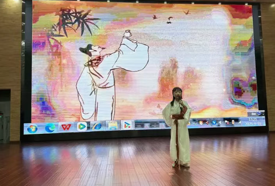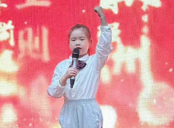 比赛现场,小选手们以饱满的热情展现着对诗词的理解与热爱。低年级组的小朋友们身着传统服饰,用稚嫩却洪亮的声音诵读《江南》《敕勒歌》等经典诗词,搭配生动的手势舞,将童真与诗韵完美融合。高年级选手则以篇章诵读为主,《少年中国说》的深情演绎让人动容,《将进酒》的豪迈诵读尽显气势,出彩的表现赢得评委与师生的阵阵喝彩。