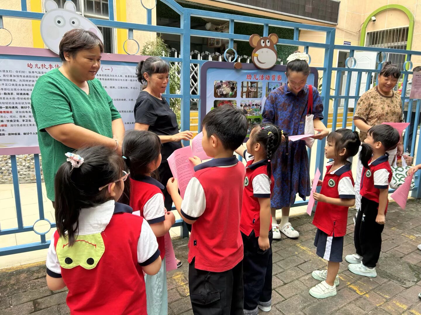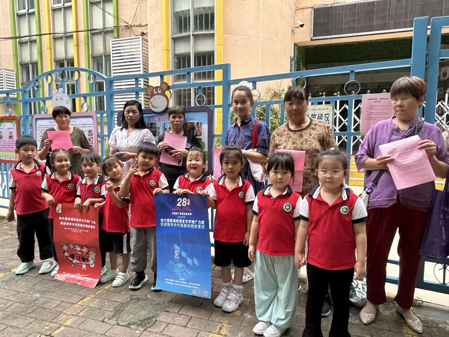 为进一步加大普通话推广力度,长幼杏林分园利用户外电子大屏、国旗下讲话、宣传栏、班级群等方式进行全面的宣传。“小小推普员”在老师带领下,向家长和社区居民发放普通话倡议书,倡导大家学说普通话。