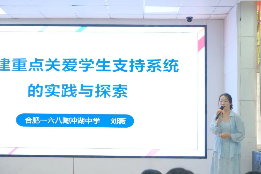 合肥一六八陶冲湖中学刘薇老师则聚焦“构建重点关爱学生支持系统”这一主题,分享了基于校情、学情建立“班级—年级—校级”三级联动关爱机制的经验。她强调,要树立全校“一盘棋”思想,整合资源,形成合力,为学生构建全面、立体的支持网络。