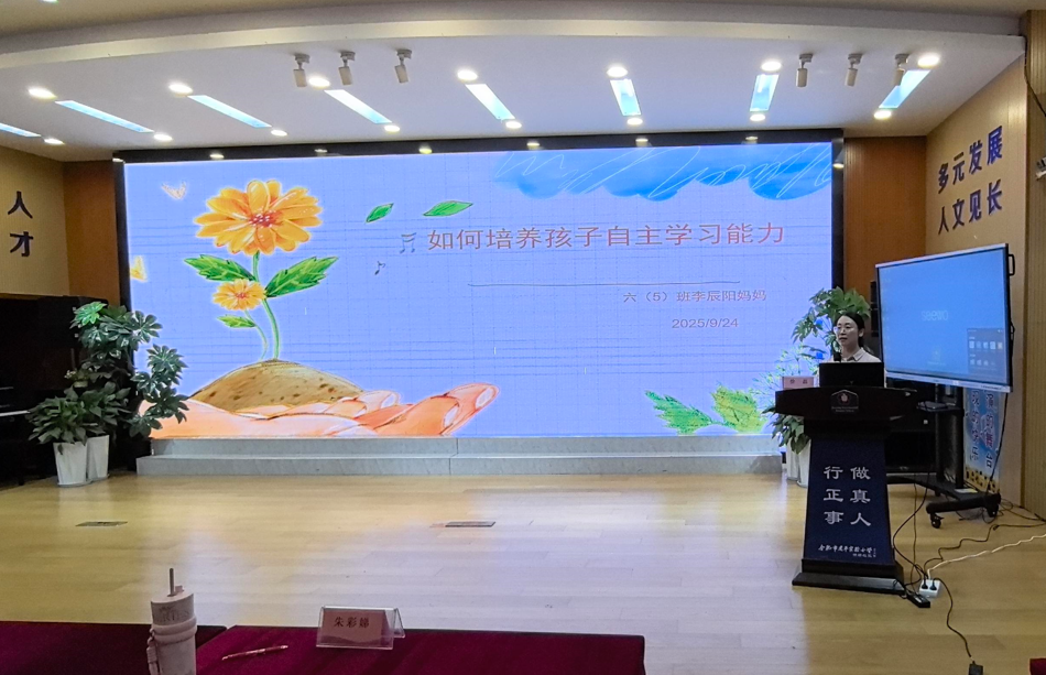 四年级家长学校结束后,六年级家长学校活动持续开展。首先,六年级的束静和孙霞老师,分别进行了自主学习养成家庭指导主题宣讲。紧接着,六年级优秀家长代表徐磊女士分享了家长如何培养学生自主学习的能力。