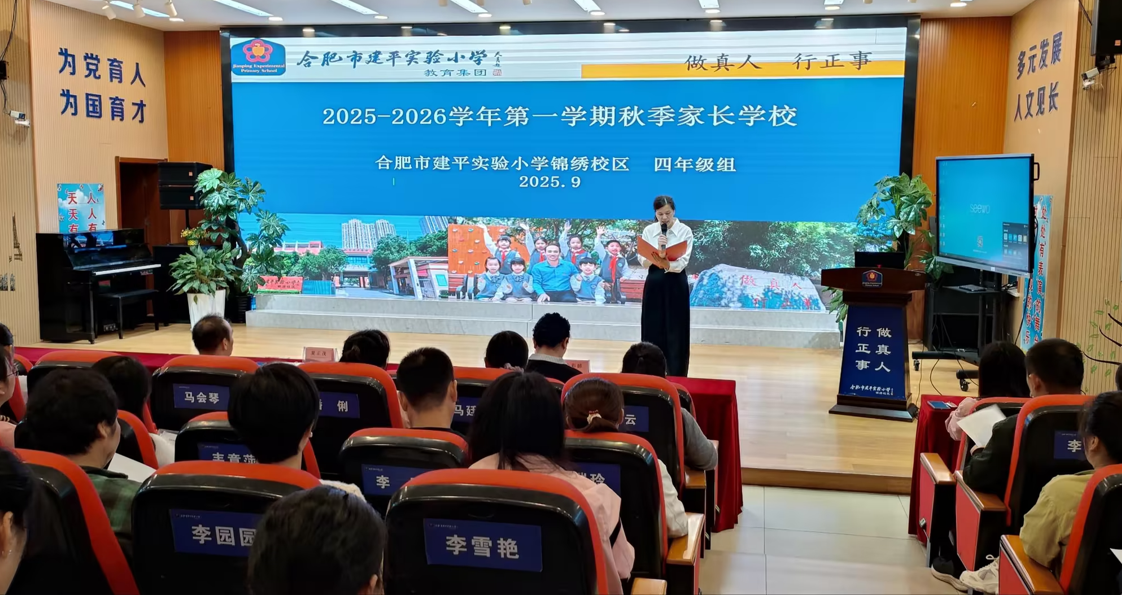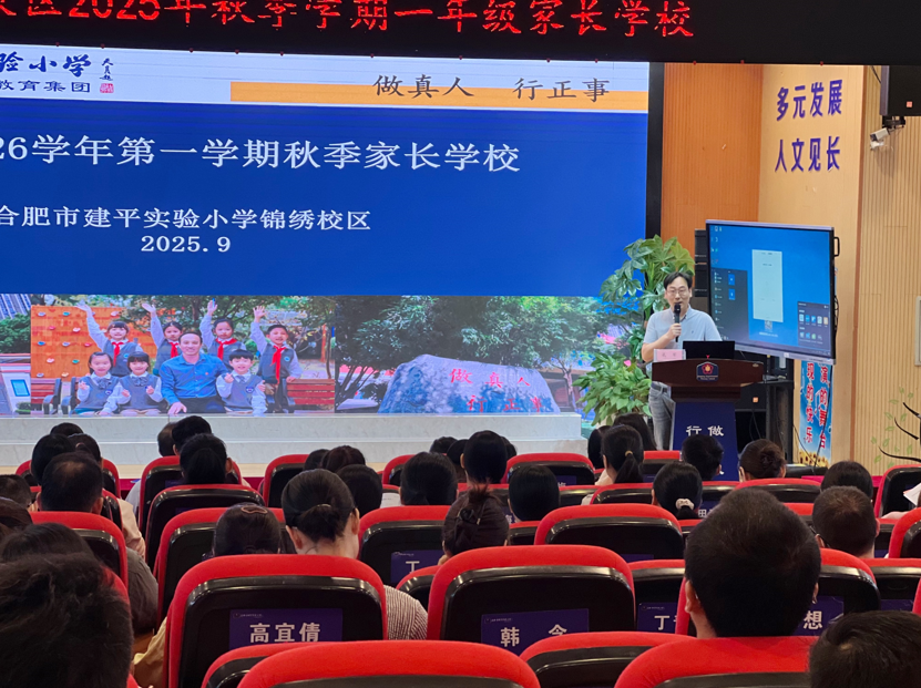 丹桂飘香,秋韵盎然。9月23日上午,合肥市建平实验小学锦绣校区分两场开展一年级家长学校讲座,活动包含学校介绍、学生入学情况与家校共育建议、《校外文明》读本解读、食堂安全等热点问题答复及习惯培养专题讲座,由上海建平教育顾问季萍校长、执行校长夏正茂、副书记孔军、副校长史迎春、及一年级教师代表李小龙联袂主讲。