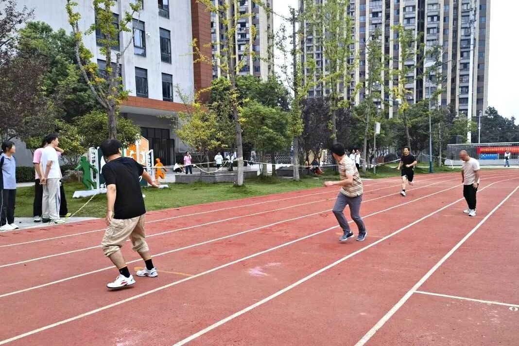 教师4×100接力赛是本次盛会的“温馨彩蛋”。平日里手持粉笔的老师们,此刻化身活力满满的运动员,在跑道上接力奔跑。接棒时的精准递接、奔跑时的奋力摆臂,让赛场瞬间沸腾;偶有交接的小插曲,也引得台下学生笑着呐喊“老师加油”,师生间的距离在助威声中悄然拉近。当最后一棒老师冲过终点线,全场学生欢呼着涌向跑道,操场内满是欢声笑语与热烈掌声。