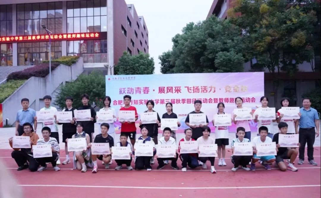 金秋送爽,彩旗飘扬。9月26日,随着最后一项接力赛冲线号角的吹响,合肥市行知实验中学第三届秋季田径运动会暨教师趣味运动会正式落下帷幕。为期两天的赛场之上,少年们的身影格外耀眼:跑道上的奋力冲刺、沙坑前的纵身一跃、领奖台后的击掌欢呼,每一个瞬间都定格着青春的热血与执着。