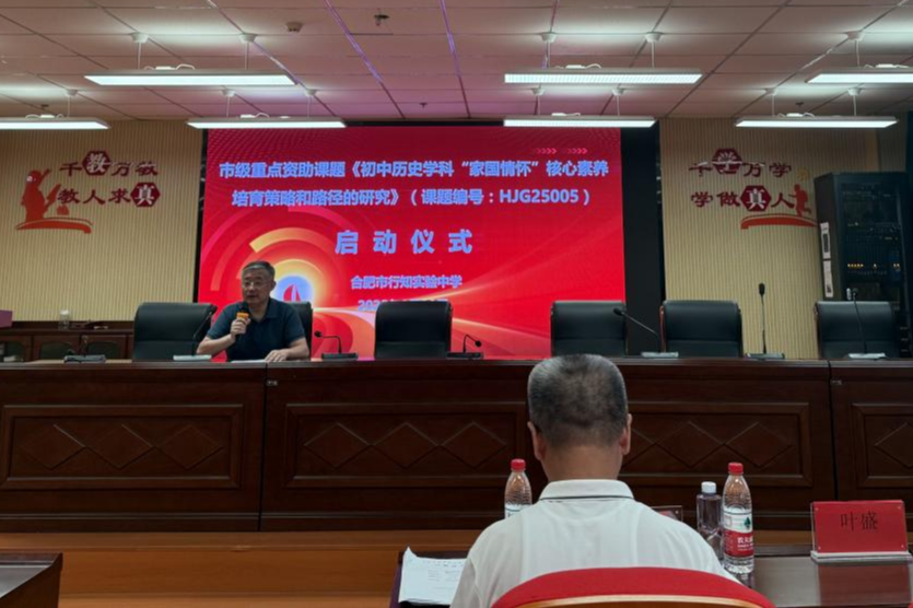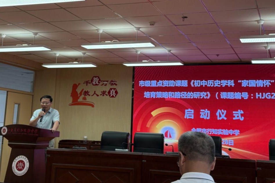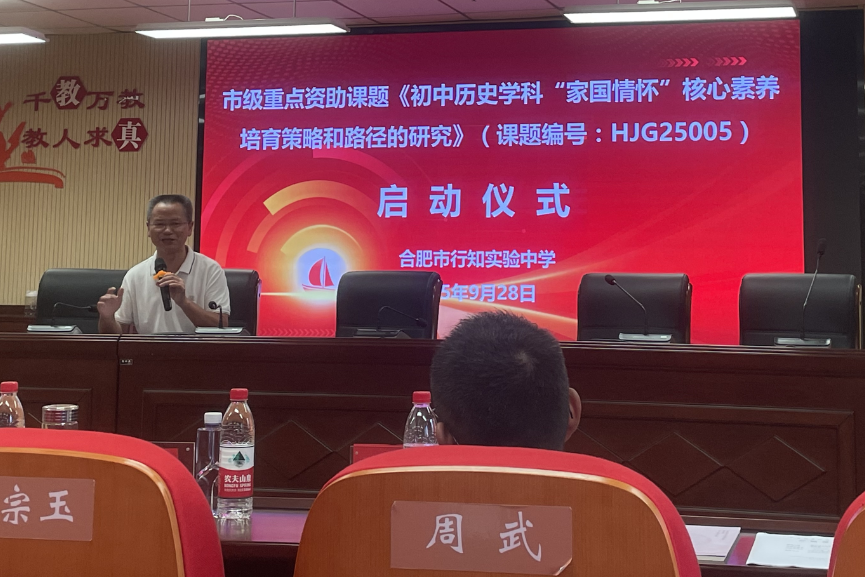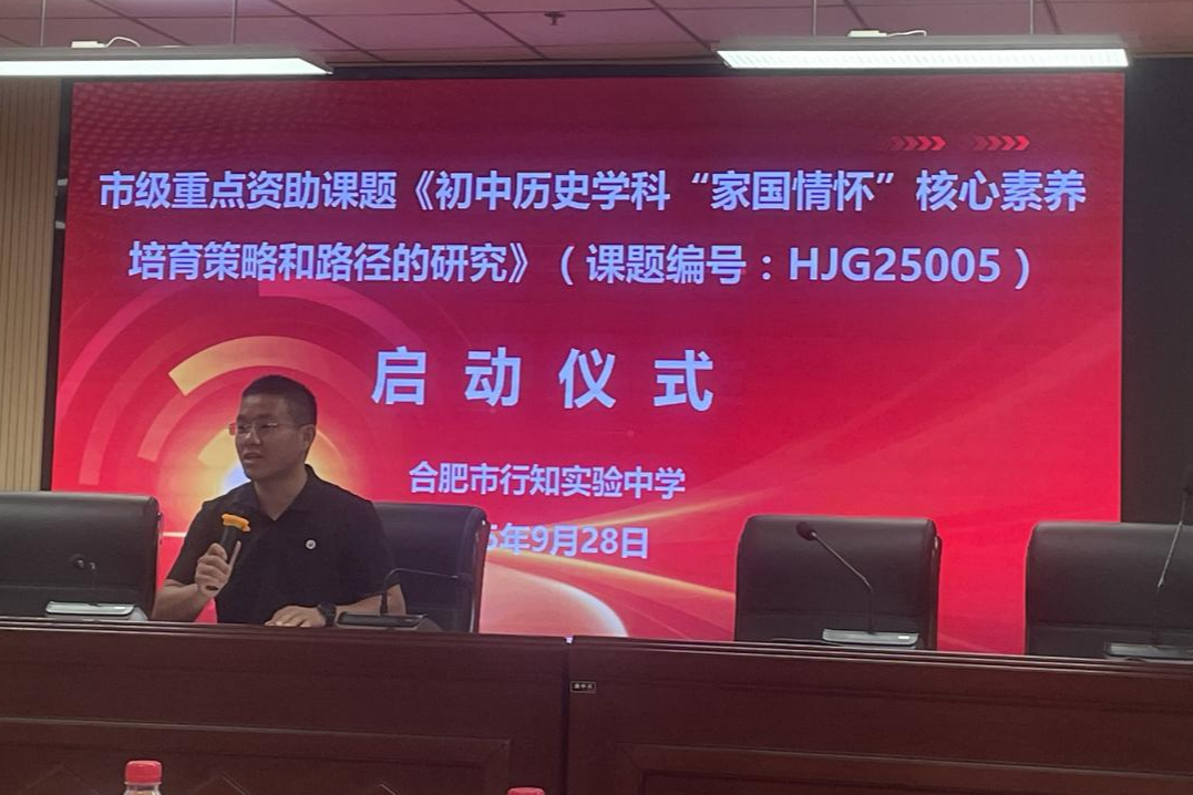 9月28日,合肥市瑶海区2025年初中历史导师制第四次培训活动暨市级重点资助课题《初中历史学科“家国情怀”核心素养培育策略和路径的研究》启动仪式在合肥市行知实验中学五楼会议室举行。本次活动由吴常琳历史名师工作室承办,瑶海区历史学科导师制核心成员、吴常琳名师工作室主持人及成员、课题组全体成员参与活动,合肥市行知实验中学相关领导出席仪式,共同开启初中历史学科“家国情怀”核心素养培育研究的新征程。