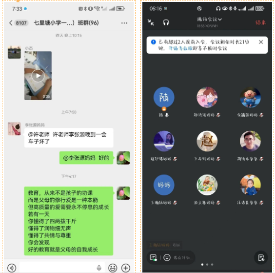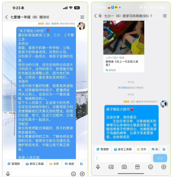 线下,是课堂上的关注和课间的陪伴;线上,班级群、电话、视频通话则成为了家校沟通的便捷桥梁。老师们及时与家长分享班级动态、育儿心得,家长也能随时反馈孩子情况。这种灵活即时的互动,确保了关爱不断线,成长不延期,让教育关怀更具时效性与广度。