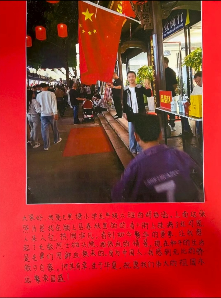 近日,合肥市七里塘小学以“行走中国 爱在旅途”为主题的国庆亲子实践拓展之图片征集展在校园内温情启幕。一张张定格山河美景与亲子温情的照片,不仅展现了祖国大地的壮阔风光,更传递出家庭间的浓浓爱意,成为秋日校园里一道暖心的风景线。