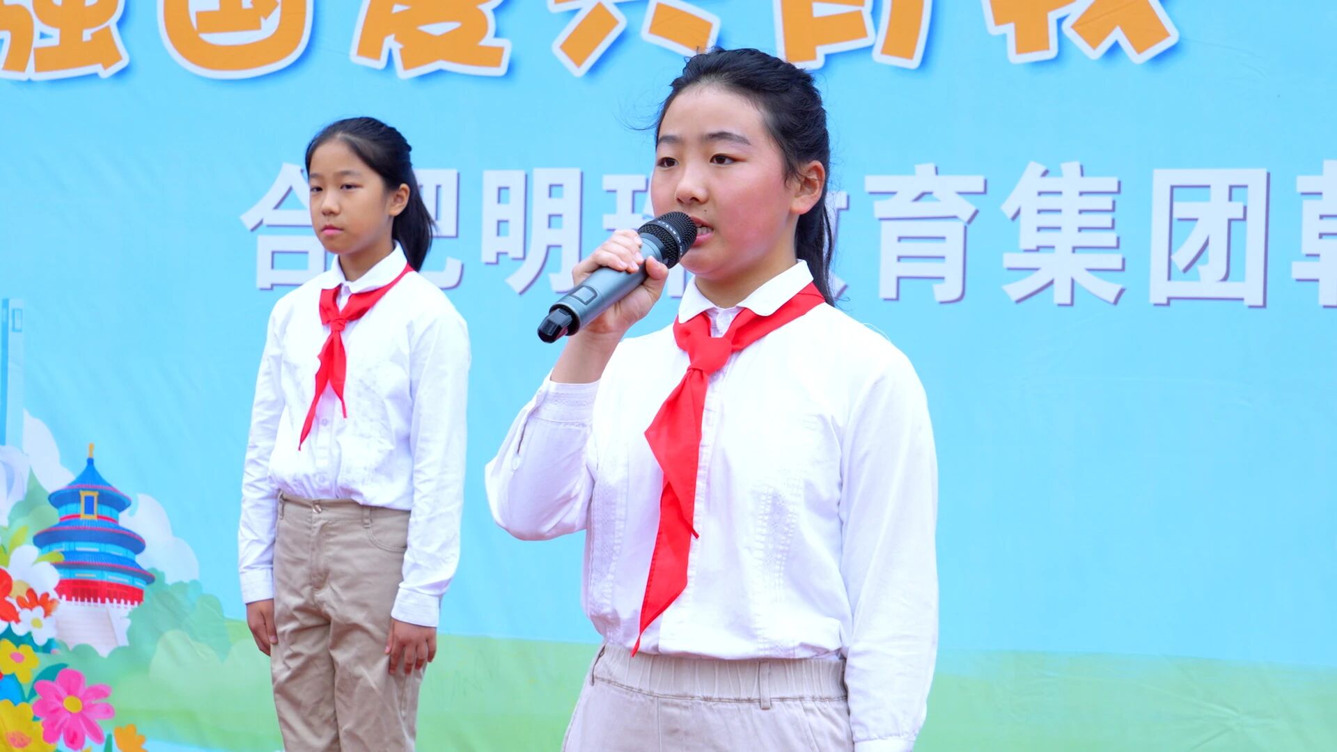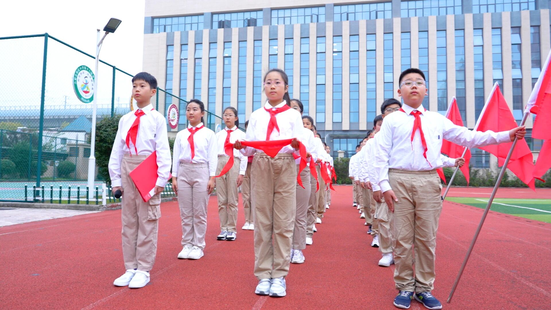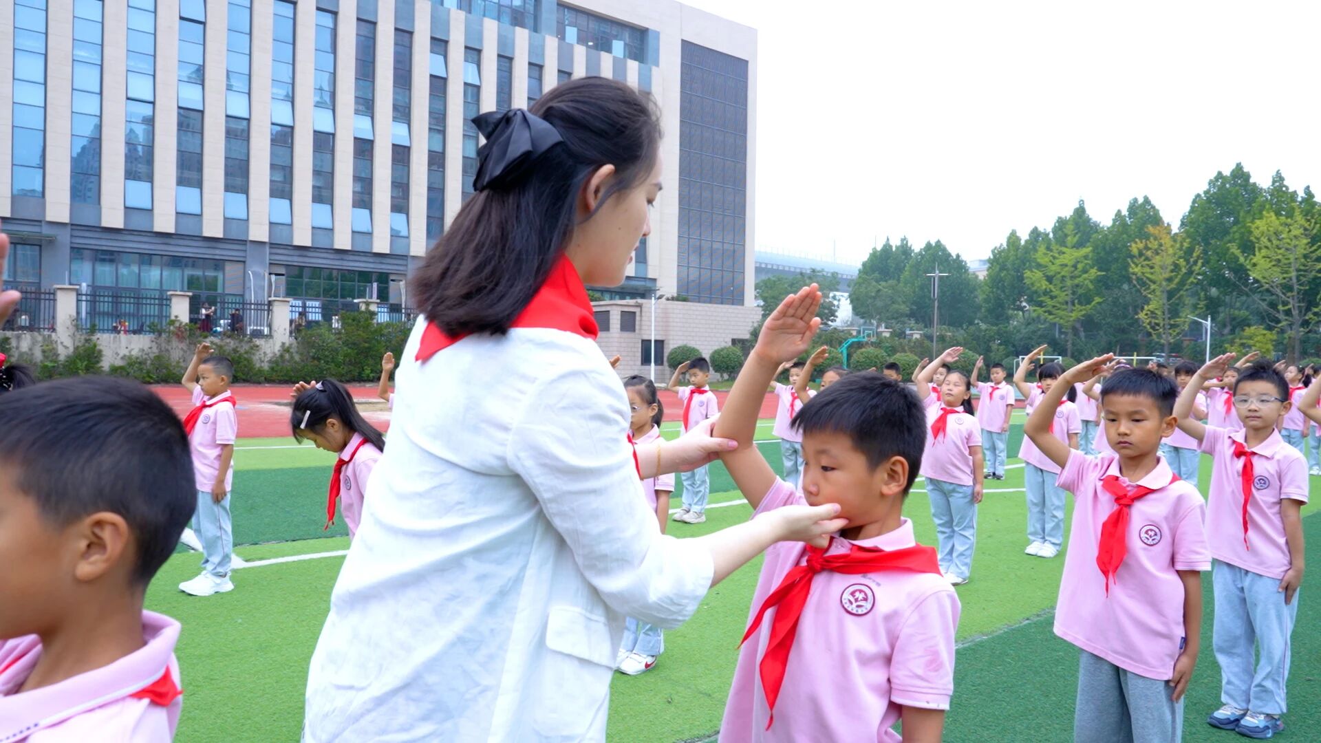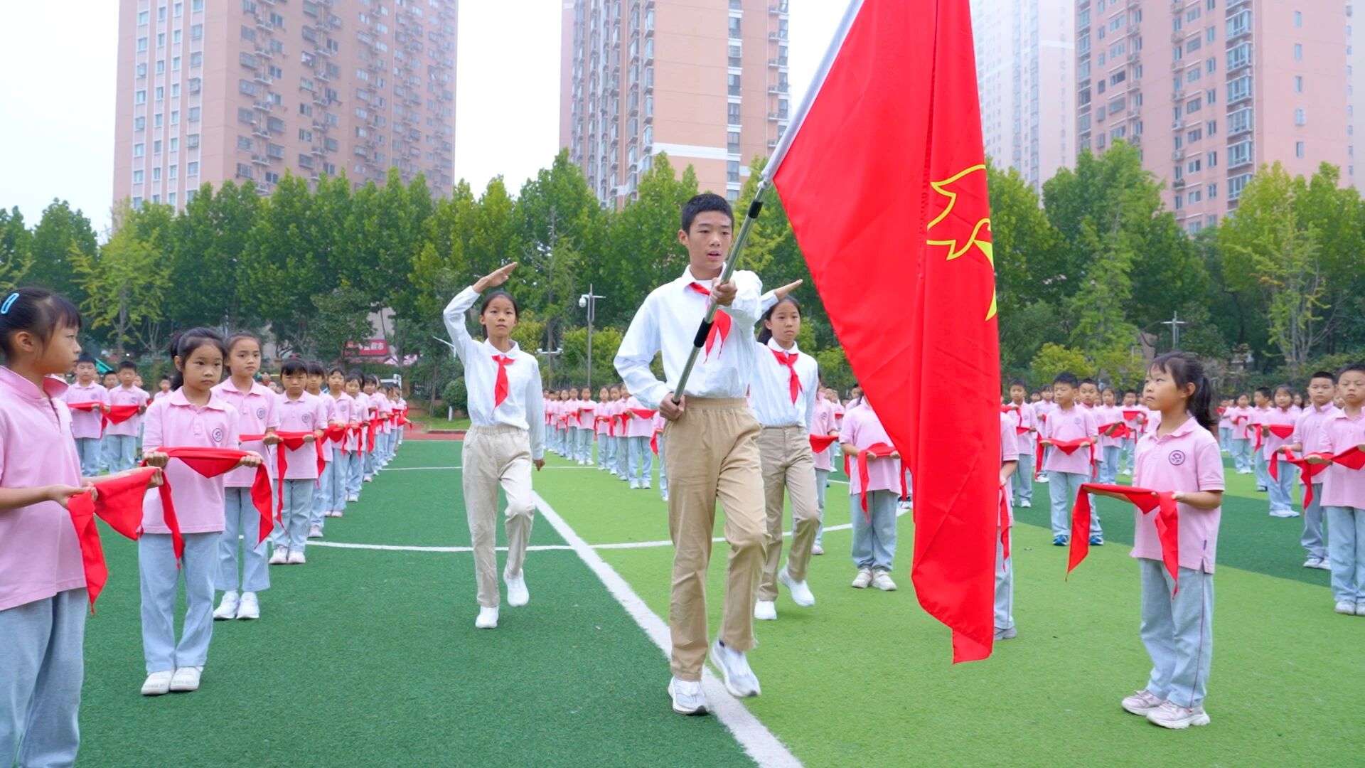 仪式在激昂的《出旗曲》中开启,旗手们昂首擎旗,全体师生肃立致敬,尽显庄重。随后,在张豪泽老师指挥下,全场齐唱《中国少年先锋队队歌》,稚嫩歌声回荡校园,让“做共产主义接班人”的信念扎根心中。