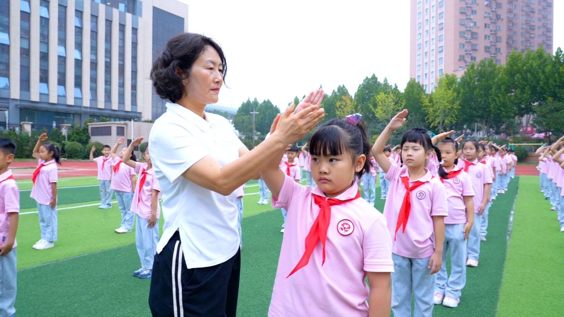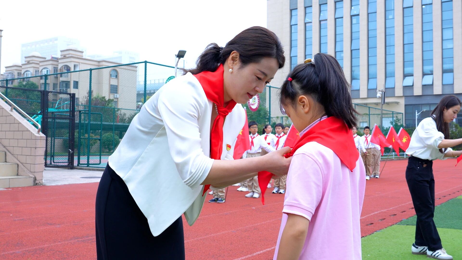 卢凤玲叮嘱新队员,要以红领巾为傲,将“好好学习、好好锻炼”融入日常,从小事做起,争做有理想、有品德、有本领的新时代好少年。随后,中队辅导员胡玲老师领呼,全体队员“时刻准备着”的回应响彻云霄。