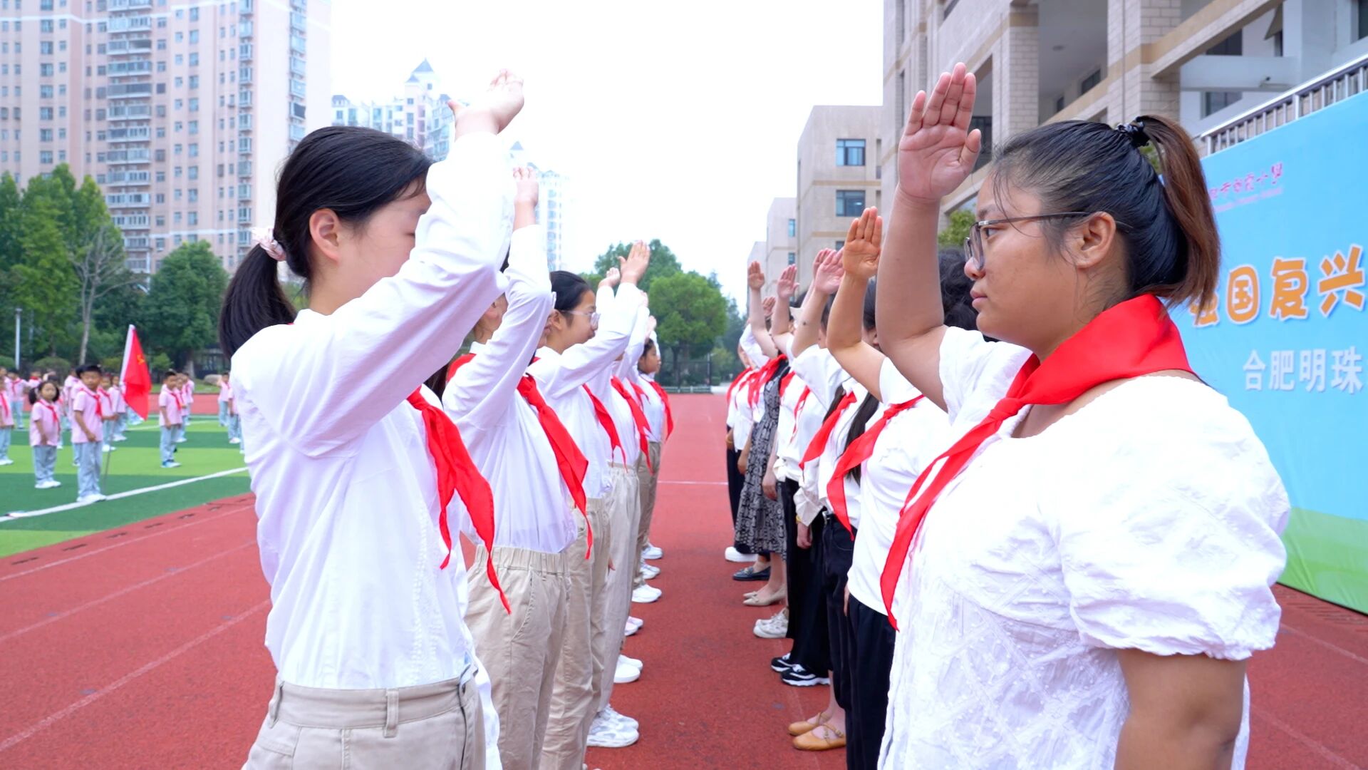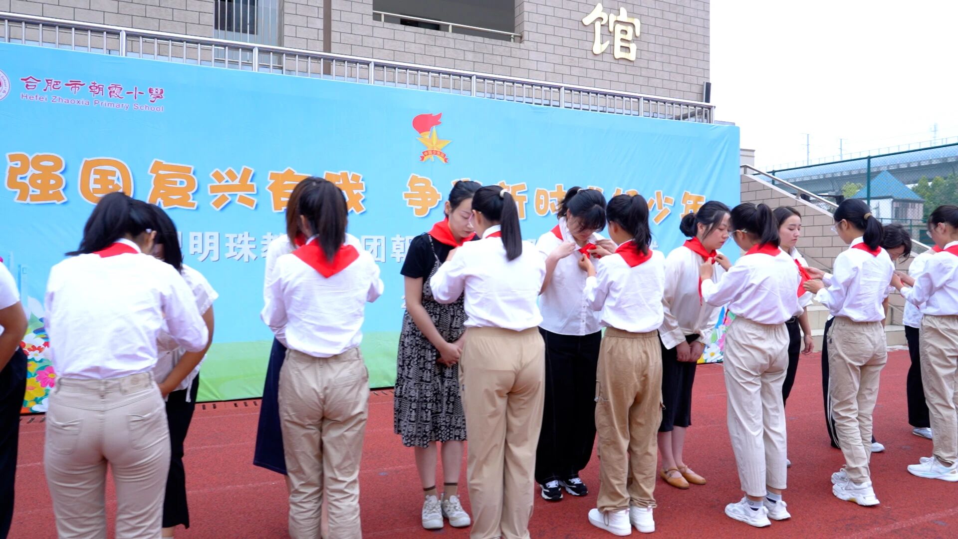 10月11日清晨,合肥明珠教育集团朝霞小学操场队旗飘扬,以“强国复兴有我 争当新时代好少年”为主题的少先队新队员入队仪式如期举行。学校党支部副书记吴学明、副校长卢凤玲等领导与全体师生,共同见证新队员的光荣时刻。