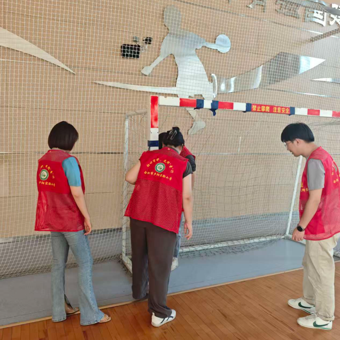 队伍集结完毕后,大家简单沟通确认了排查路线与重点——按照“室外体育器材→室内器材室→消防设施→食堂”的顺序推进,着重聚焦体育器材稳固性、消防设施有效性及食堂食品安全等关键环节。明确方向后,排查行动即刻有条不紊地展开。