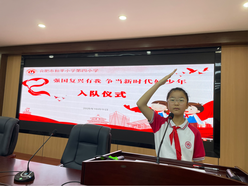 2025年10月11日,在少先队建队76周年纪念日即将到来之际,合肥市和平小学第四小学举行“强国复兴有我,争当新时代好少年”第二批少先队员入队仪式。