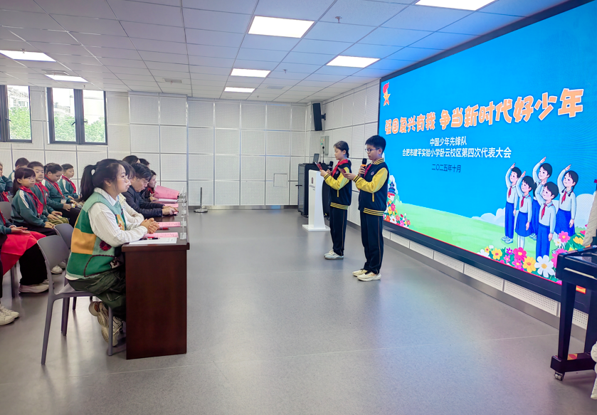 2025年10 月 16 日 ,合肥市建平实验小学卧云校区以 “强国复兴有我,争当新时代好少年”为主题,在多功能厅召开第四次少代会。3~6年级各中队队员代表及辅导员老师代表齐聚现场,共赴这场少先队盛会。