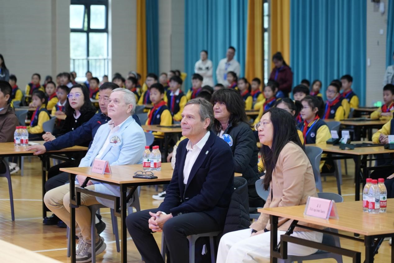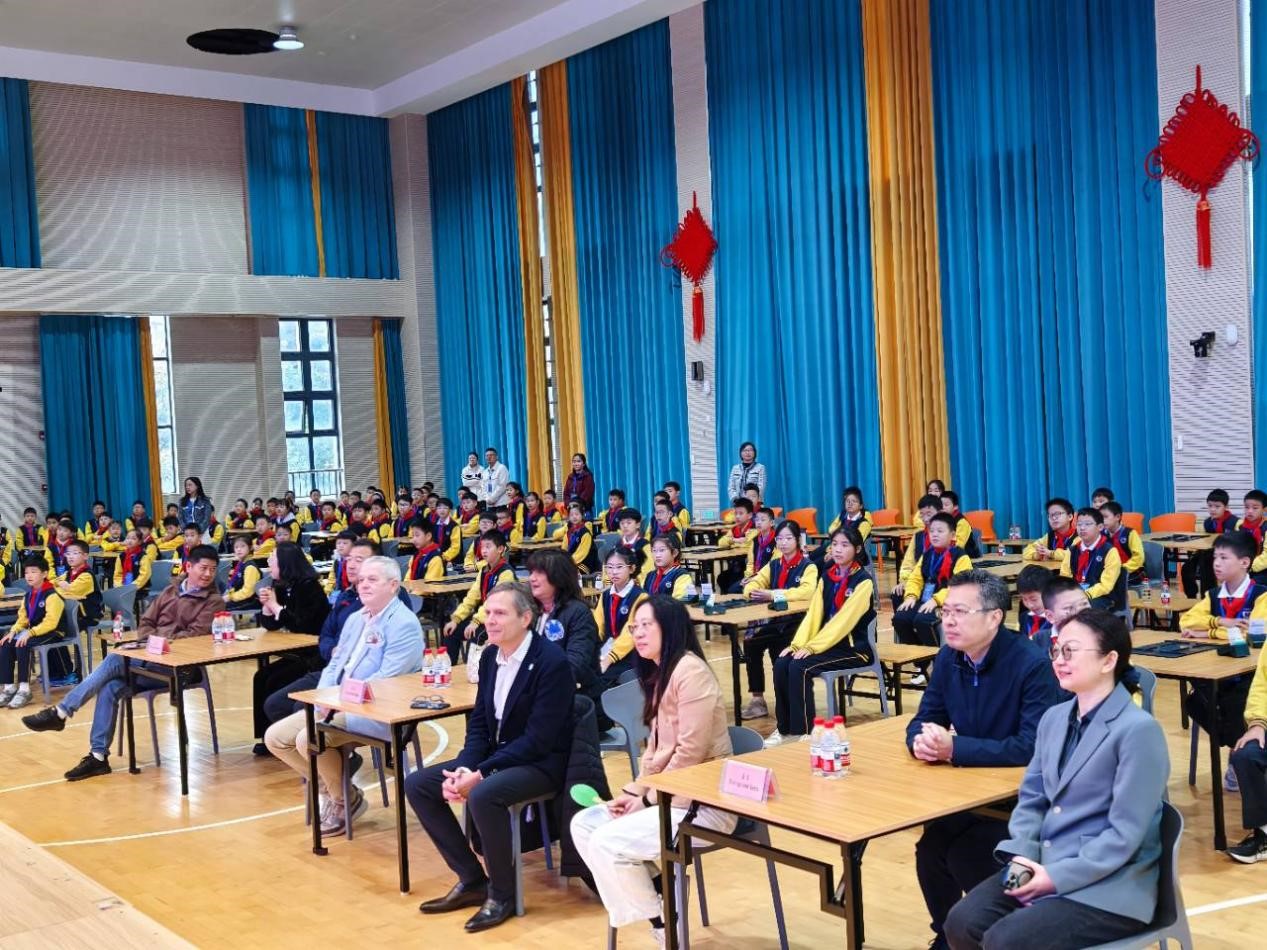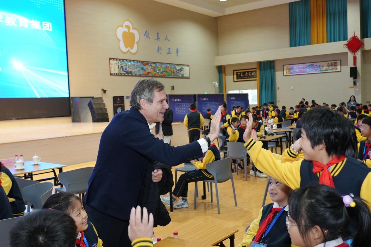 当天上午,恰逢2025年合肥建平教育集团学生桥牌联赛在南艳分校开幕,各校区桥牌社团师生代表齐聚一堂。合肥市建平实验小学党支部书记、校长李梅发表了热情洋溢的致辞,她回顾了集团桥牌教育发展历程,学校近年来深耕桥牌教育并以牌育智、以牌育人,成果斐然,此次国际嘉宾到访,是对学校学生桥牌教育工作的高度认可。
