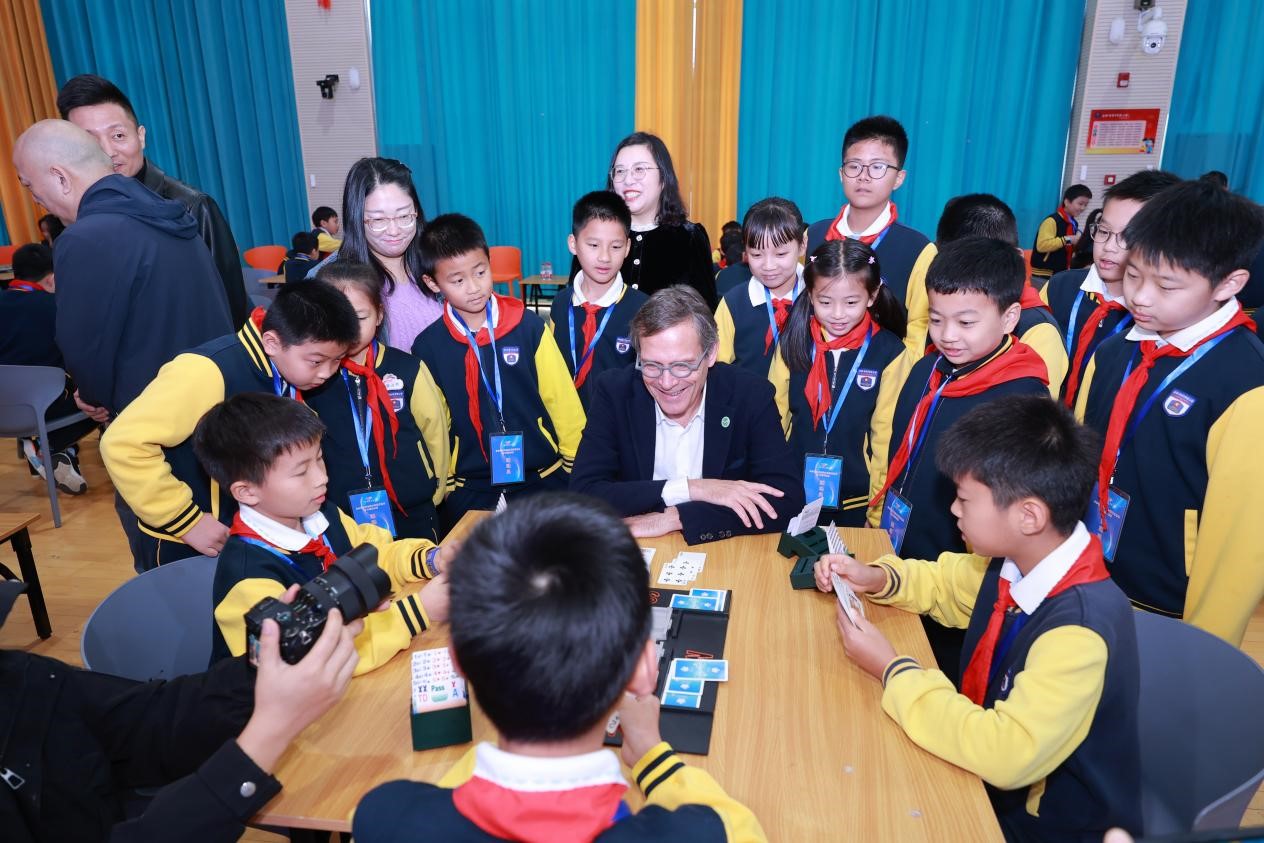 10月20日上午,世界桥牌联合会主席弗兰克·里姆先生携夫人、副主席埃里克·劳伦特先生一行莅临合肥市建平实验小学教育集团,开启了一场跨越国界与文化的交流之旅,国家体育总局、合肥市体育局、合肥经开区管委会等相关部门领导陪同参观。