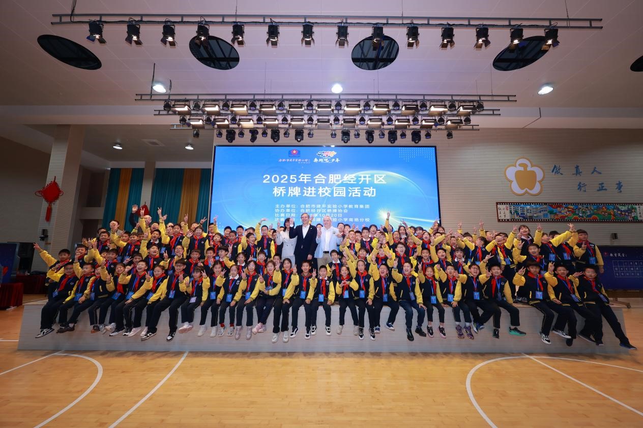 据悉,作为第五届全国智运会桥牌赛事举办地,合肥经开区近年来通过“桥牌进校园”积极培育新生力量,2023年,合肥建平桥牌社团依托学校课后三点半课堂应运而生,自成立以来多次代表学校参加各级桥牌赛事,在经开区首届及第二届桥牌公开赛中,分别荣获多项组别冠亚季军的优异成绩;在2025年全国桥牌综合锦标赛U16组公开赛的排位赛中,由南艳分校6名年龄不足12周岁的同学组成的少年桥牌队,以安徽省首支青少年队伍的身份亮相上海赛场并顺利完成比赛任务,创造了安徽桥牌运动发展史上的重要里程碑。(孙晓佳 汪乐)