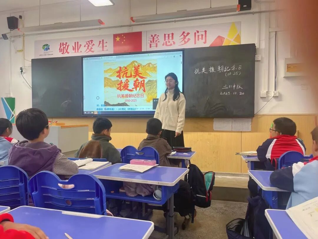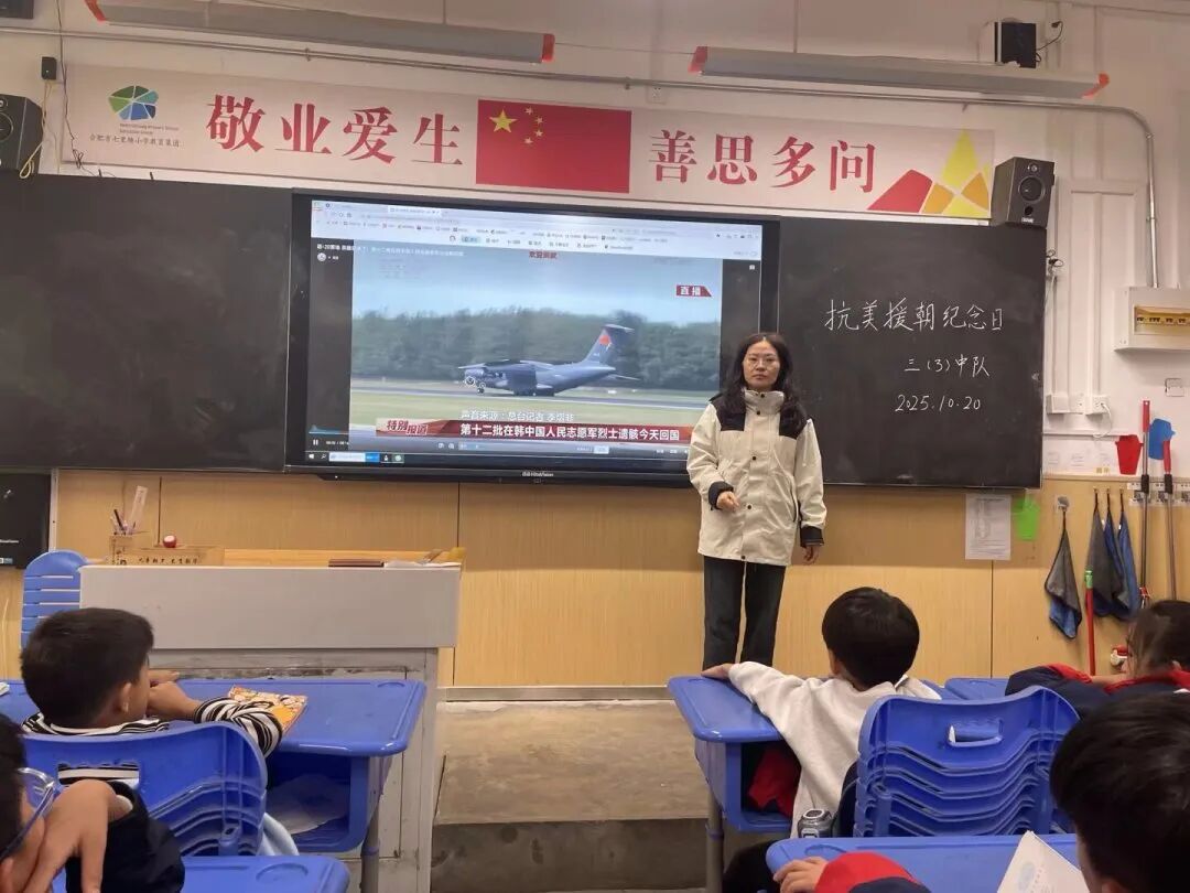 下午的班会课上,各班级围绕抗美援朝纪念日开展了形式多样的主题教育。二年级以“队前教育”为核心,老师们通过绘画英雄勋章、学唱红色歌曲等方式,在孩子们心中播下爱国主义的种子;中高年级则结合校园防欺凌教育,引导学生从志愿军的“团结协作、不畏强权”中汲取力量,学会勇敢面对困难、守护公平正义。班主任老师总结道:“抗美援朝精神不仅是历史的丰碑,更是我们今日应对挑战的勇气源泉——无论是课堂上的难题,还是生活中的挫折,我们都应像英雄那样坚韧不拔。”