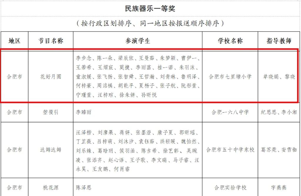 近日,安徽省教育厅公布全省中小学生中华优秀传统文化传承成果专项活动评选结果,合肥市七里香民乐团凭借深厚的艺术功底与默契的团队演绎,一举斩获民族器乐类一等奖,以民乐之声传递文化自信,为校园艺术教育写下亮眼篇章。