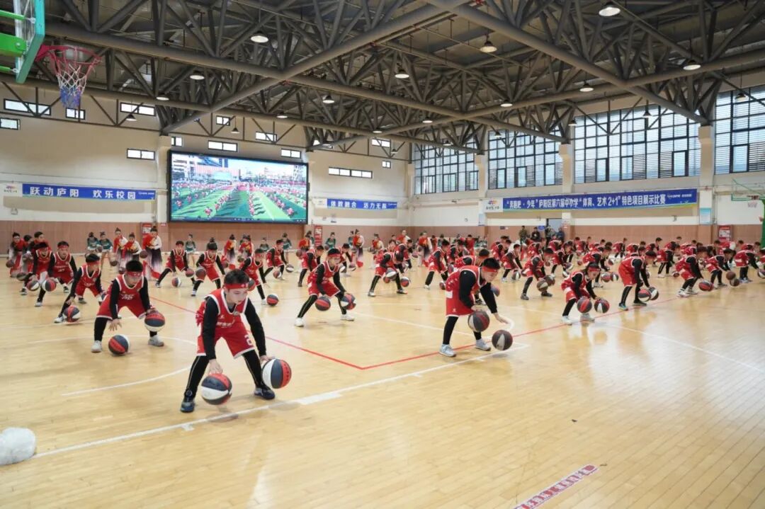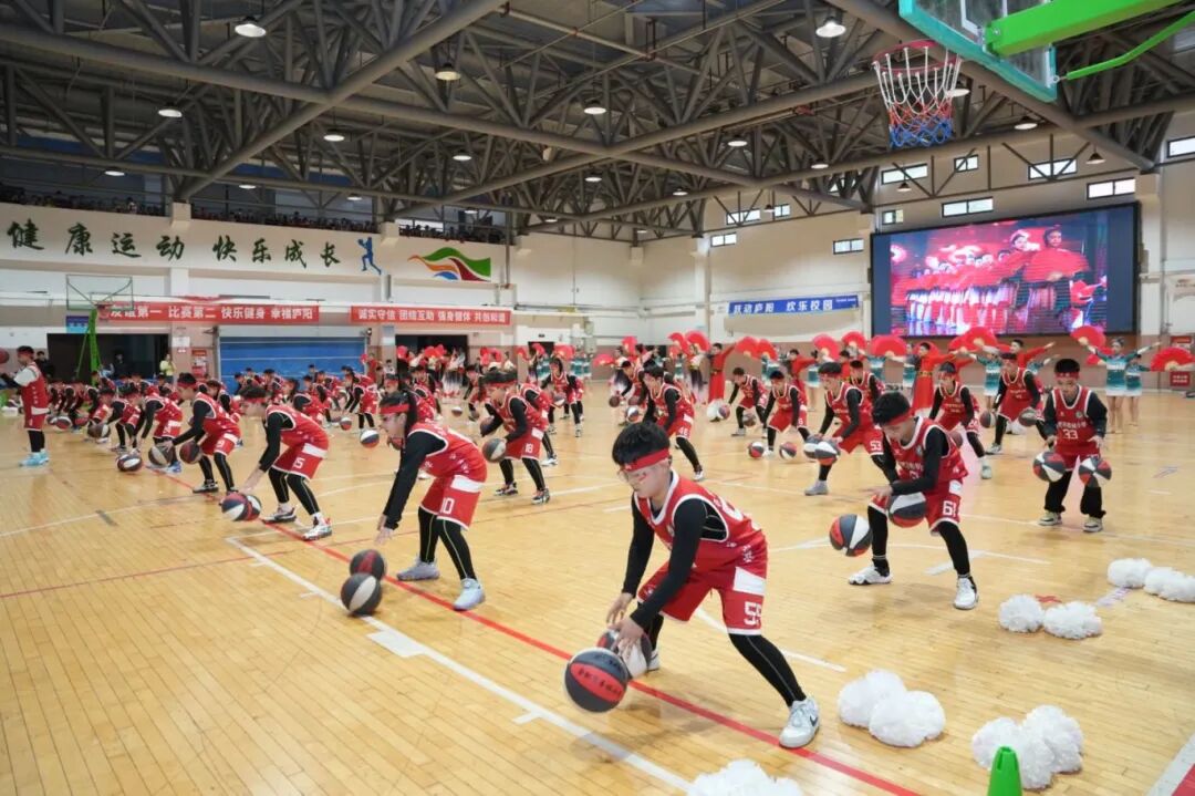 现场展示中,篮球操帅气与默契并存,小小篮球在指尖旋转跳跃,在队员手中灵活穿梭,精准的传球、有力的投篮和整齐的队形变换火爆全场。