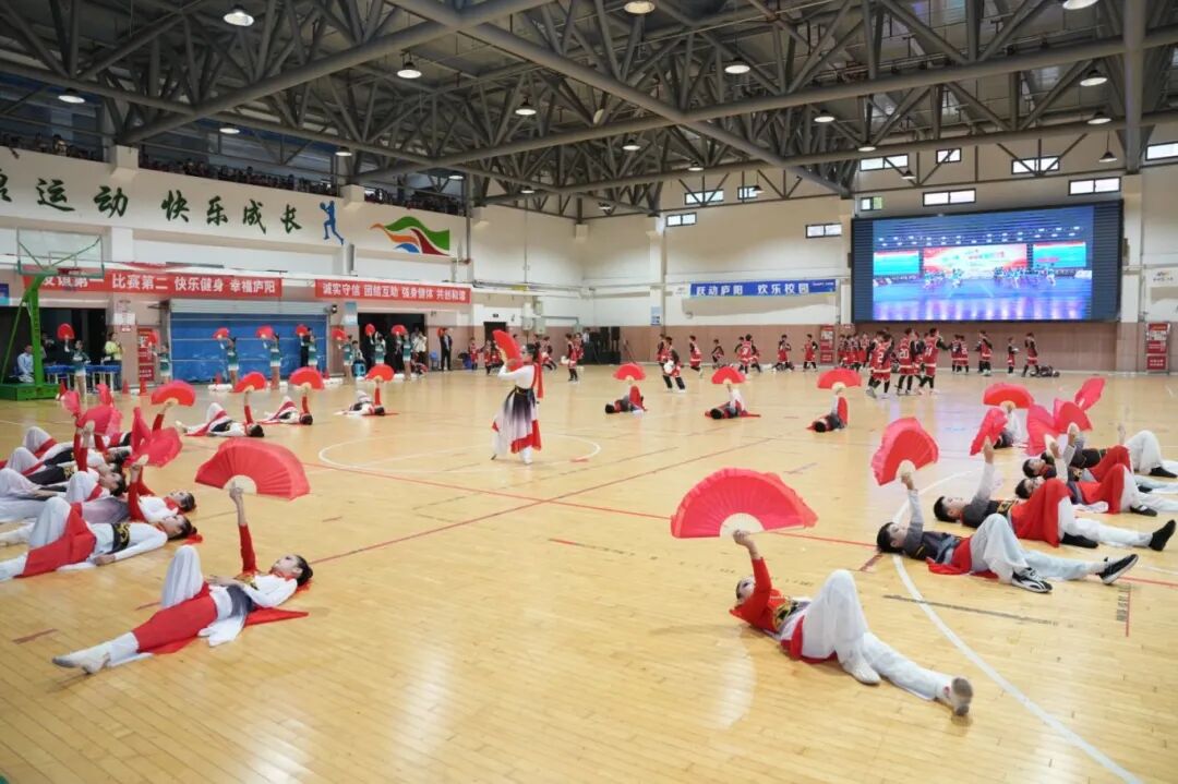扇子舞则是传统与活力的碰撞,彩扇翻飞,舞姿婀娜,将传统文化与少年活力巧妙融合,用灵动的动作诠释了传统文化的韵味。体育馆内,乐声悠扬、舞姿翩跹。