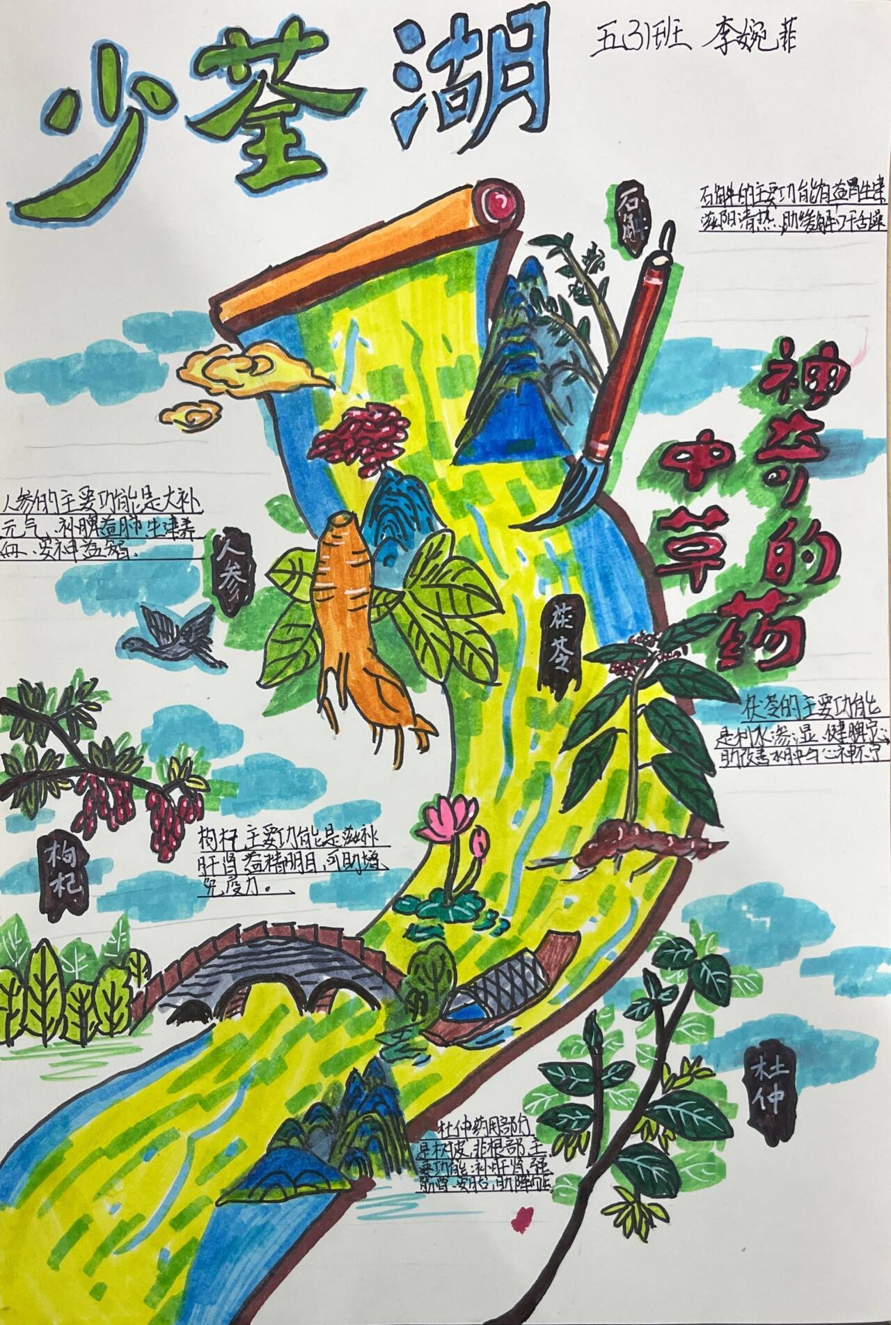 活动结束返程时,学生们纷纷表达不舍,感慨“原来少荃湖里藏着这么多科学与本草知识”。返校后,学生们主动整理活动笔记与收集的中草药样本,学校则鼓励大家将此次研学所得转化为图文并茂的手抄报,后续将集中张贴于校园一楼大厅,让更多同学共享探索成果,传递科学探索的乐趣。