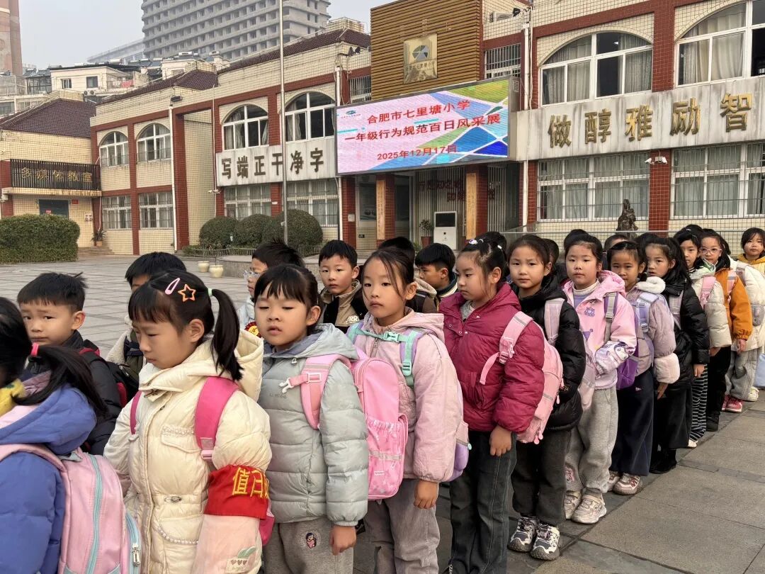 12月17日上午,合肥市七里塘小学“百日砺规育新荷 活水滋田润童心”一年级行为习惯养成百日风采考核正式拉开帷幕。距离一年级新生入学已有100多天,这段时间里,学校将行为习惯培养作为新生适应教育的核心内容,通过系统化、渐进式的引导,帮助孩子们逐步适应小学生活,养成良好的学习习惯和行为规范。本次的风采展示,见证了孩子们从稚嫩新生到规范小学生的成长蜕变。