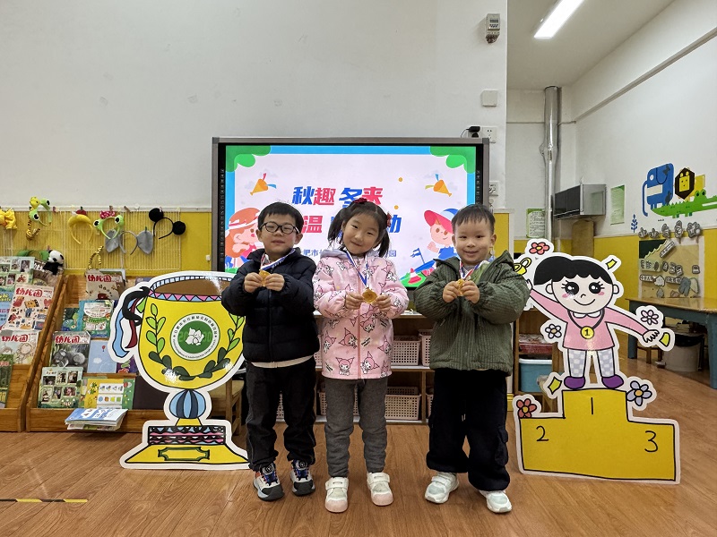 所有项目结束后,幼儿园为每一位参与比赛的孩子颁发了“运动小健将”奖牌。孩子们手捧金灿灿的奖牌,小心翼翼挂在胸前,互相展示、分享喜悦。奖牌不仅象征着他们在运动月中的努力与进步,更承载着一段充满汗水与欢笑的成长记忆。