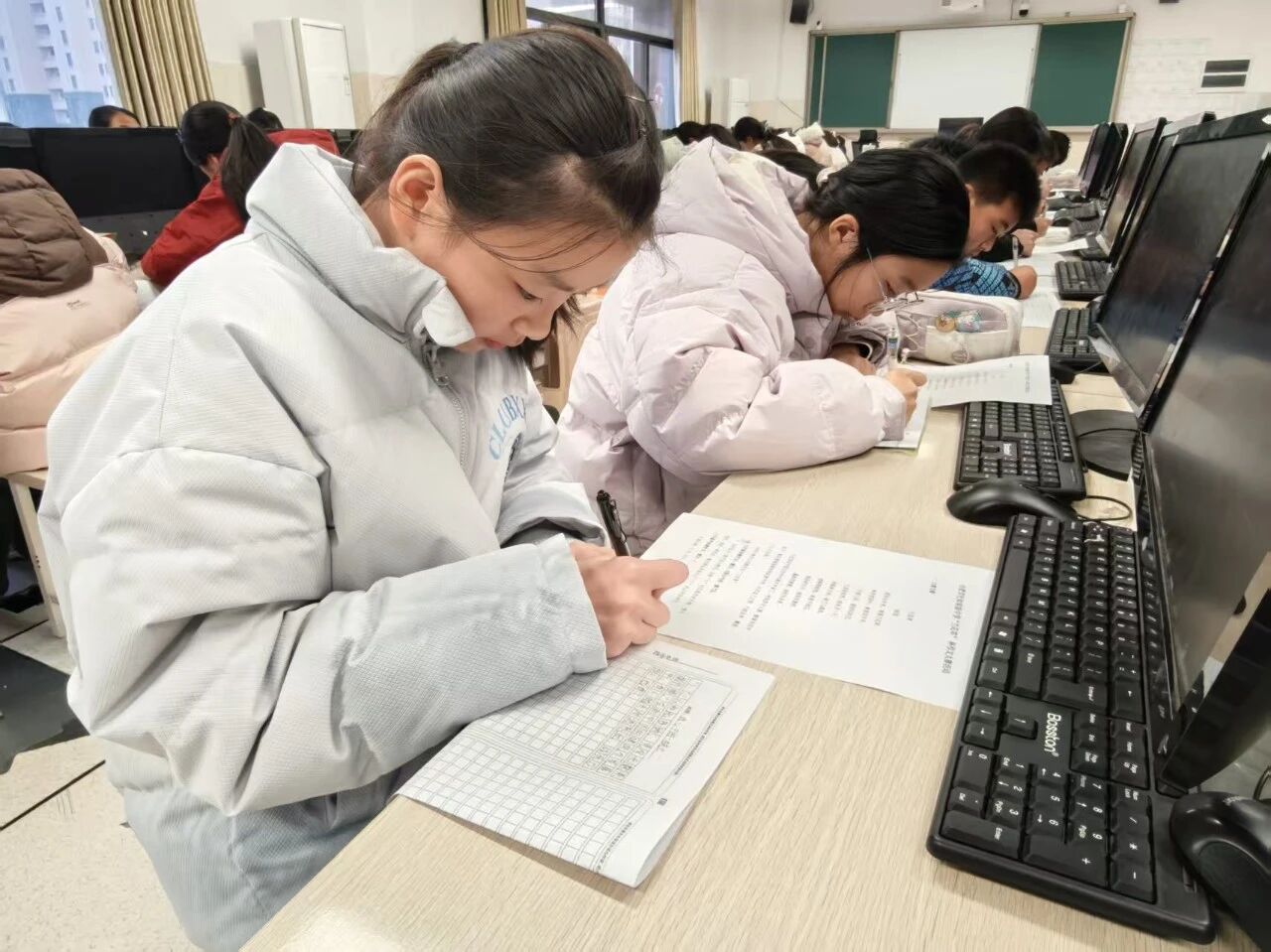 大赛面向七、八年级全体学生,分为初赛和决赛两个阶段。初赛由各班语文教师自主命题、组织撰写及初步遴选,实现了全员参与、班班开展的良好局面。在层层选拔的基础上,每班推选出2名优秀选手晋级决赛,最终共有48名写作能手汇聚赛场,展开激烈角逐。12月17日下午,决赛在学校五楼多媒体教室正式举行,采用现场命题、限时写作的方式,全程秩序井然、氛围严肃。监考工作由荣娟、赵萍萍两位老师负责,保证比赛公平公正;评审环节则由刘扬、蔡育新、陈雅婷、汪玲莉四位老师组成的专业评委团共同完成,从主题契合、内容构思、语言表达、情感真实等维度对作品进行了细致评审。