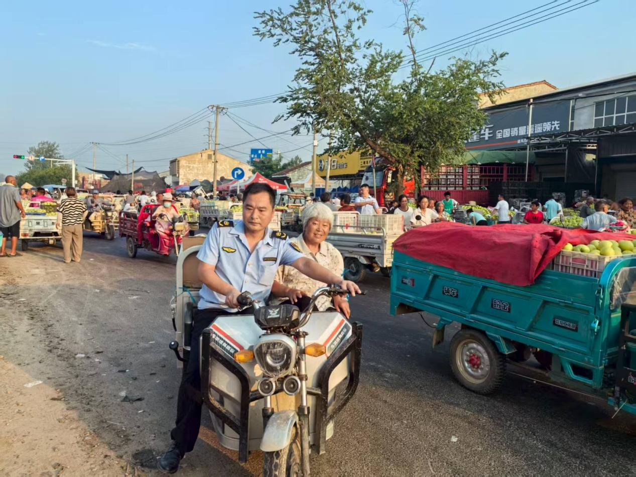 八月骄阳下,砀山县赵屯镇的万亩梨园迎来皇冠梨采收高峰。田间地头,满载金黄果实的农用车穿梭不息,乡村公路上,头戴草帽的果农们正将“甜蜜的负担”运往市场。在这幅动人的丰收图景背后,一支由镇综合行政执法大队和交警中队组成的护农小分队正以“宣传+整治”双轨模式,为乡村振兴注入平安动能。