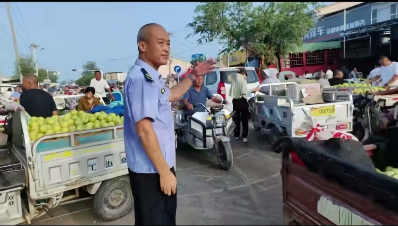 这抹藏青,是早市上最安心的底色。当早梨的甜香随着车流送往更远的地方,执法队员们仍守在街角,用坚守为丰收季护航,让每一份辛勤的收获,都能沿着畅通的路,稳稳抵达。