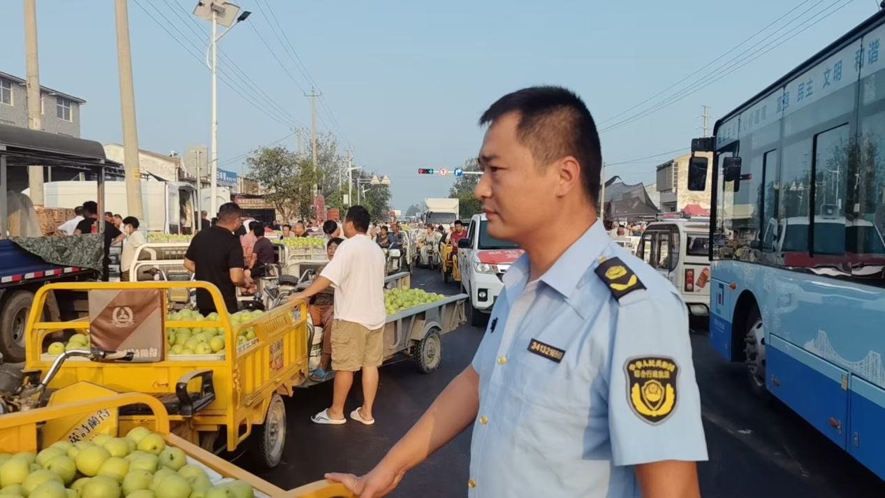 面对压力,砀山县赵屯镇综合行政执法队主动扛起责任大旗,提前精心谋划应对之策。为了保障路面畅通无阻,执法人员积极与沿路30余家商户展开协调,耐心地与商户、水果收购商沟通,根据每家店铺的位置和空间,合理规划车辆停放区域。商户和水果收购商们纷纷积极配合,最终实现了车辆的有序停放,为交易的顺利进行奠定了基础。