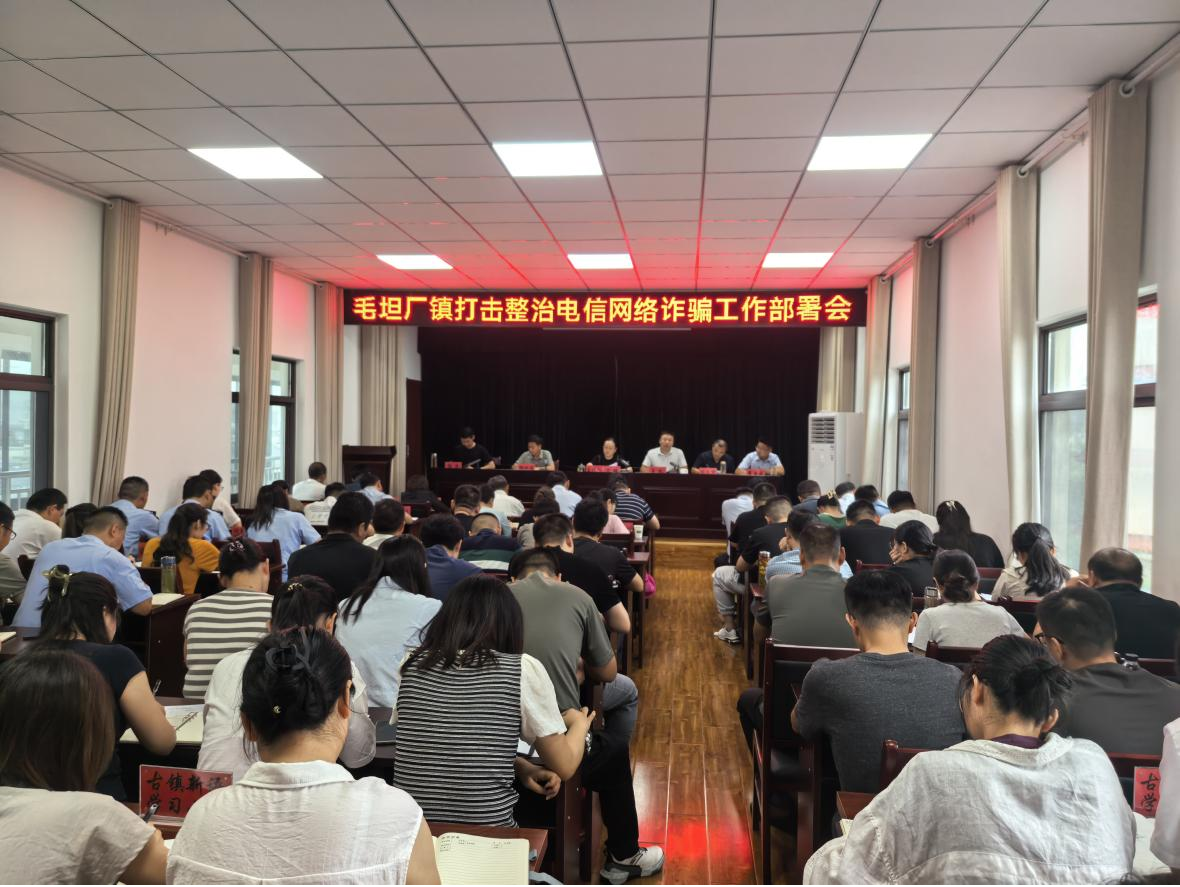 高位部署,压实责任。8月1日,毛坦厂镇召开打击整治电信网络诈骗工作专题部署会。镇长王凯传达上级精神、通报全镇案情,并对下步工作做出详细安排。镇党委书记金娅着重强调,务必做到宣传精准全面、提升工作敏感度和精准度,坚持常抓不懈,层层压实村(社)主体责任,核心目标在于最大限度压降发案数,切实维护群众利益,守护好群众的“钱袋子”。