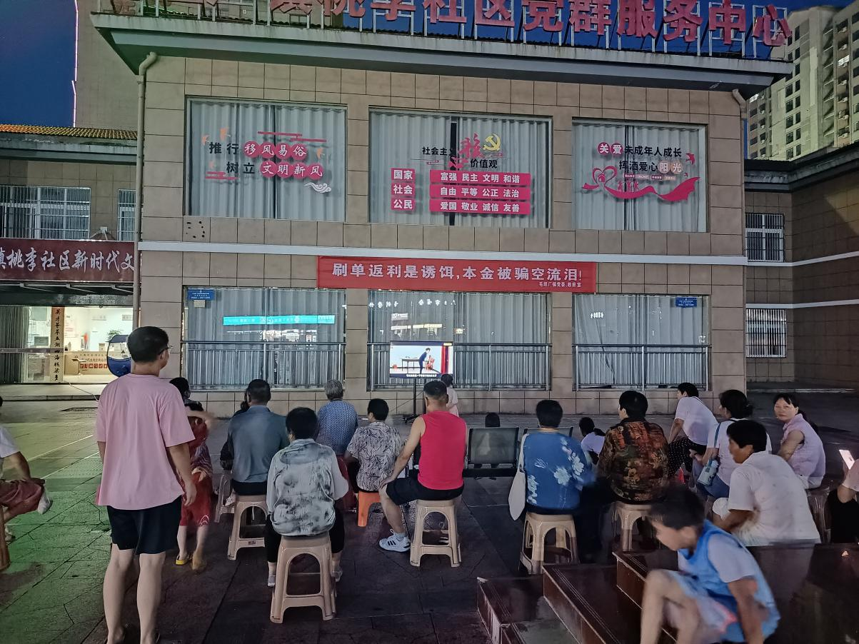 迅速行动,创新宣传。部署会后,各村(社)积极响应落实。桃李社区于8月4日晚组织居民及陪读家长在桃李园广场集中观看反诈警示教育片,利用晚间普及防骗知识。同时,各村(社)紧密结合“主题党日”召开“反诈板凳会”,面对面宣讲预警信息;并制作发放印有反诈提示的宣传扇2500把、帆布包500个、一次性纸杯20000个及宣传海报横幅100余个等实用宣传品,将反诈提醒巧妙融入群众日常生活场景,深化宣传效果。