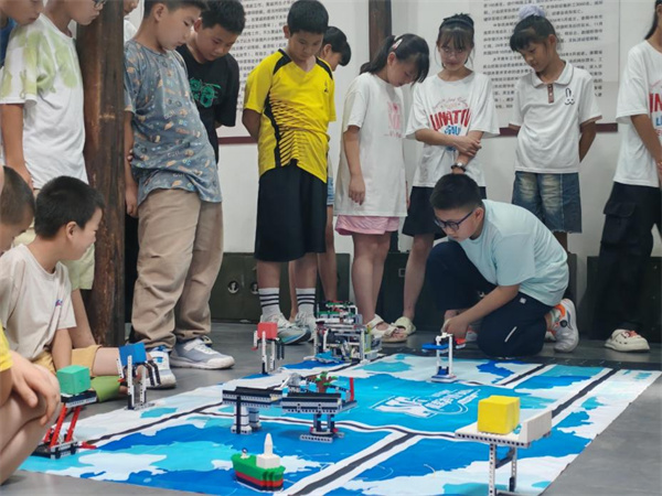 榜样示范引领,实践激发热情。随着两位24届安徽省“ATC探险者科技挑战赛”小学组一等奖获得者的闪亮登场,本场活动达到高潮。他们不仅带来了自己的获奖作品还为同学们进行赛场重现,更以同龄人的视角,清晰流畅地讲解其中的科学原理和创新巧思。看着同龄伙伴的精彩展示,现场的小观众们眼中充满惊叹与向往,纷纷跃跃欲试。在随后的互动问答环节中,孩子们更是积极踊跃地提出各种好奇的问题,两位小“科技明星”耐心解答,现场气氛热烈非凡。