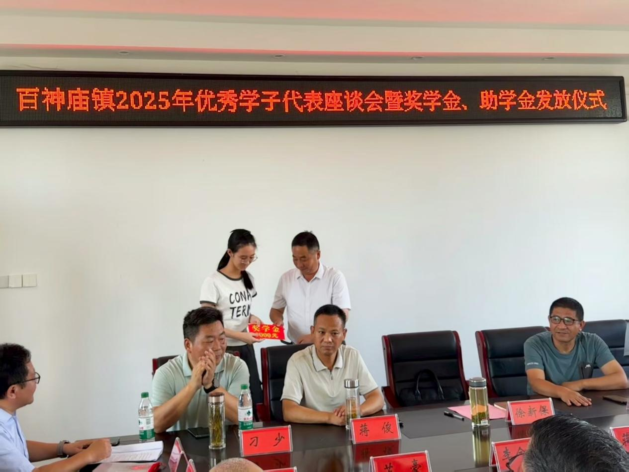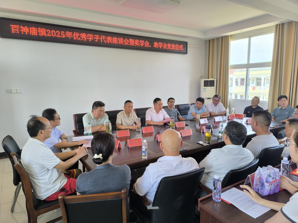夏末暑气渐消,金秋硕果可期。8月26日上午,舒城县百神庙镇2025年优秀学子代表座谈会暨奖学金、助学金发放仪式在镇中心学校隆重举行,镇政府主要领导、商会企业家代表、受助学子及家长代表齐聚一堂,以拳拳爱心为学子护航,以殷切期盼助梦想启航,共绘家乡教育发展新图景。