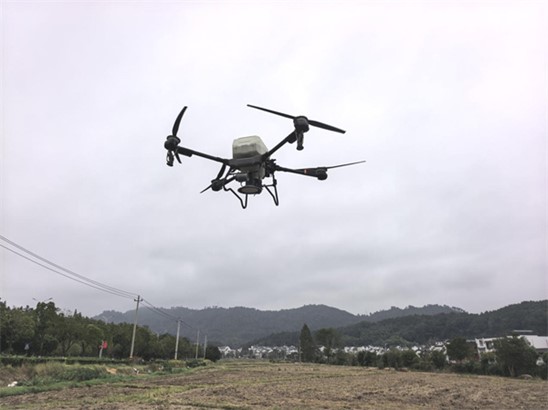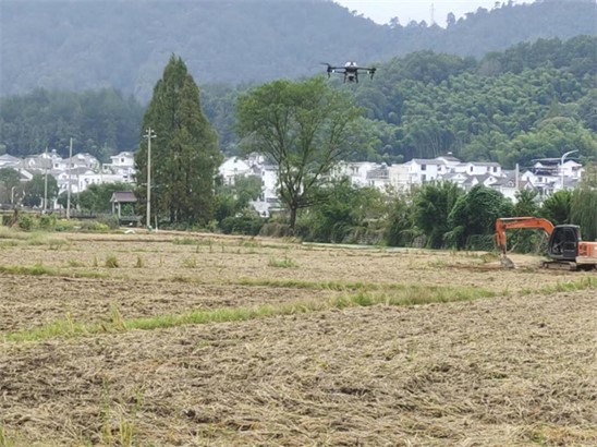 与过去“面朝黄土背朝天”的传统耕作方式不同,庄里村金色花海将从诞生就充满了“科技范儿”。在项目启动的耕种环节,只见大型旋耕机在田间高效平整土地,随后,无人机升空,按照预设航线进行精准的播种与施肥作业。
