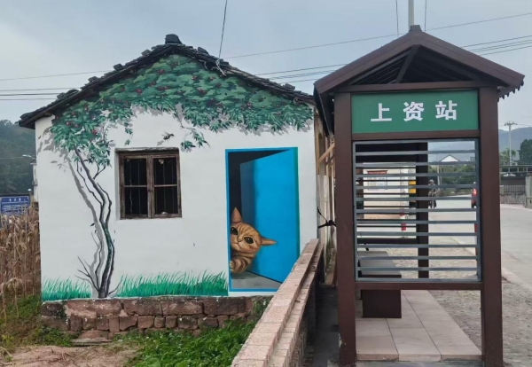 休宁县渭桥乡以 “碧云茶香 生态上演” 为主题,深入挖掘茶文化与人文历史底蕴,在上演村和美乡村建设中多点发力。民生改善上,大力推进卫生改厕工作,让乡村 “里子” 更整洁,“面子” 更靓丽;节点打造上,因地制宜打造特色节点,那处 “风是自由的” 艺术装置,以灵动设计唤醒乡野活力,成为村民与游客共享的诗意空间;便民服务则兼顾实用性与艺术性,一方面推进中心村道路硬化与背街小巷改造,将昔日坑洼土路升级为平整大道,彻底解决村民出行难题;另一方面打造 “便民公交亭 + 创意彩绘墙” 组合场景,彩绘墙上萌猫从蓝门后探出头的灵动画面,将艺术气息融入便民设施,既保障了村民出行便利,又为乡村增添了几分文艺韵味,让便民服务更有温度。