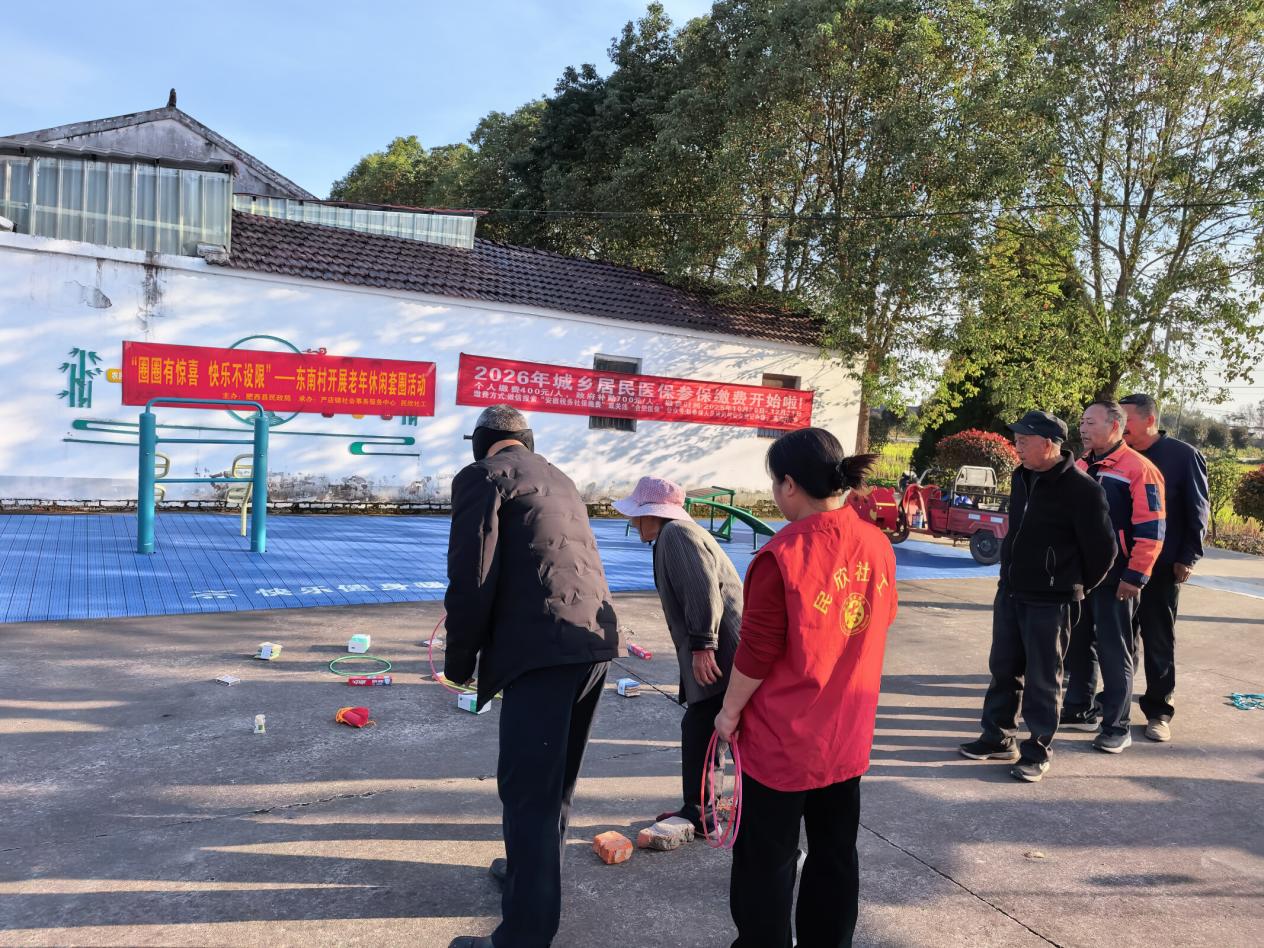 2025年11月11日,肥西县严店镇东南村活动广场沐浴在温暖的阳光下,一场专门为辖区老年群体量身打造的“圈圈有惊喜,快乐不设限”老年套圈活动隆重开幕。本次活动由肥西县民政局、严店镇新时代文明实践所、社会事务服务中心精心指导,东南村与合肥市民欣社会工作服务中心携手共同举办。活动当天,二十余位老年居民早早抵达现场,在工作人员的周到引导下,有序就座,满怀期待地准备在趣味盎然的互动中重拾欢乐时光。