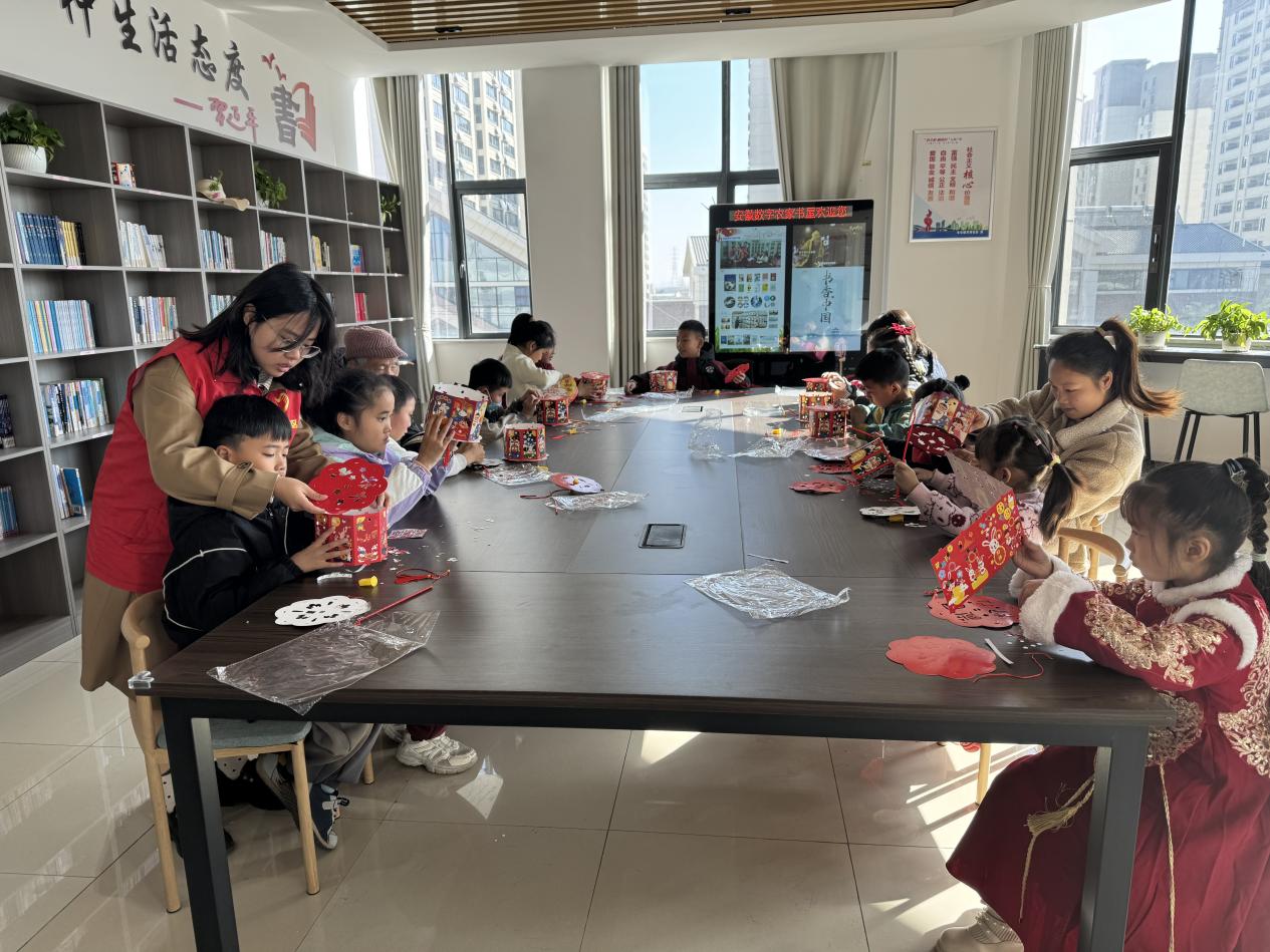 活动伊始,志愿者通过提问互动,结合图片与短视频,为孩子们讲起灯笼的起源和寓意。随后将灯笼框、串灯、提绳、流苏等材料分发给大家,为他们详细讲解制作灯笼的步骤,在孩子制作过程中,小心翼翼地剪裁、粘贴、安装,而志愿者在旁边协助,不时给出建议。经过半个多小时的努力,一盏盏精美的灯笼呈现在大家面前,孩子们捧着亲手制作的灯笼,脸上布满开心的笑容。