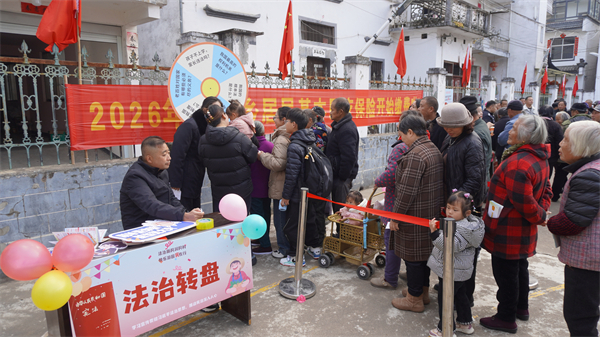在“法治茶摊”咨询区,黄山区人民法院、区税务局、区公证处、区法律援助中心的工作人员及汤口镇“法律明白人”志愿服务队成员,耐心细致地为前来咨询的村民解答法律困惑,提供专业的法治建议。“法治大转盘”“法治投壶”等趣味区域前人头攒动,老年人在转动转盘的过程中重温宪法基本权利,青少年在投壶互动中学习国体政体等核心知识,集章卡上的每一枚印章都成为群众学法用法的生动见证,真正实现了“寓教于乐、寓学于趣”。