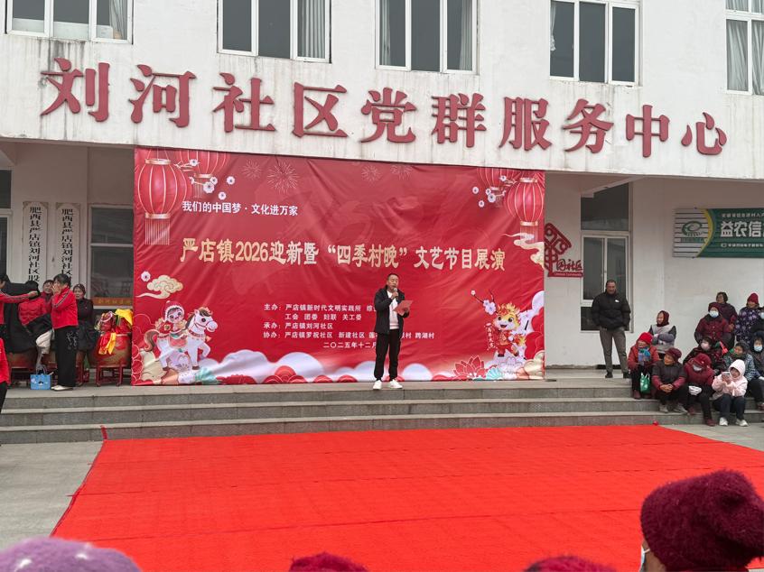 冬日暖阳照庭院,欢声笑语满社区。12月20日,肥西县严店镇2026迎新暨“四季村晚”文艺节目展演在刘河社区广场上热闹开演。辖区居民欢聚一堂,用歌声与舞姿传递幸福喜悦,共绘和美乡村的动人画卷。